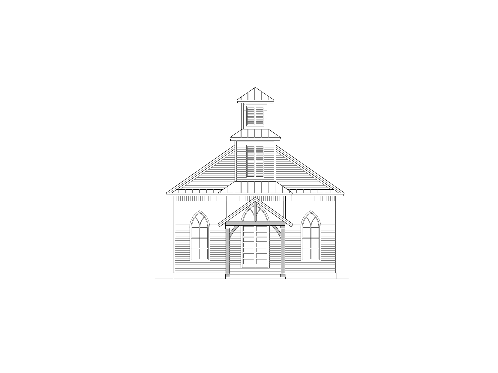 exterior shot a charming classic church with a steeple surrounded by lush greenery the church is painted in a soft ivory with a slate gray roof stained glass windows glow with colors of deep red emerald green and vibrant blue the scene is set during the golden hour with warm sunlight casting a gentle glow and soft shadows stretching across the grass the sky is a gradient of pastel pinks and oranges creating a peaceful serene atmosphere