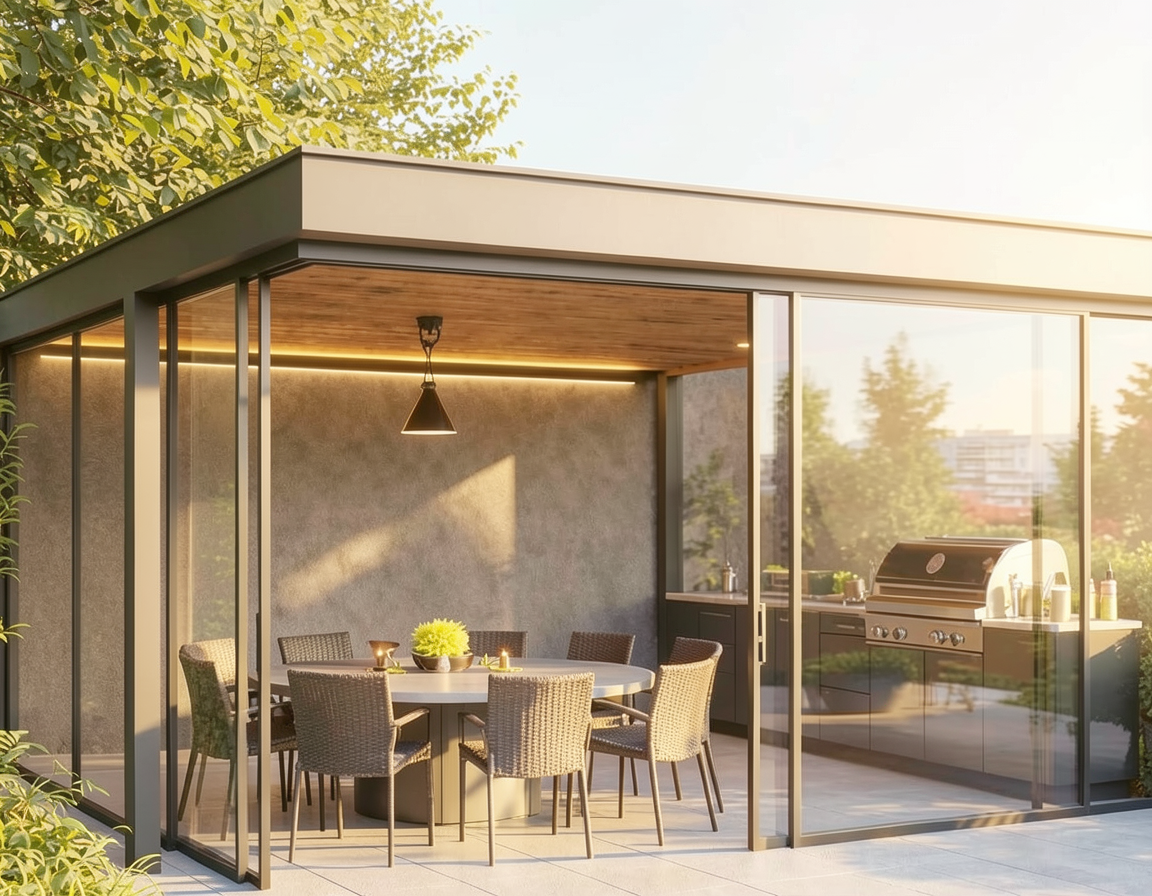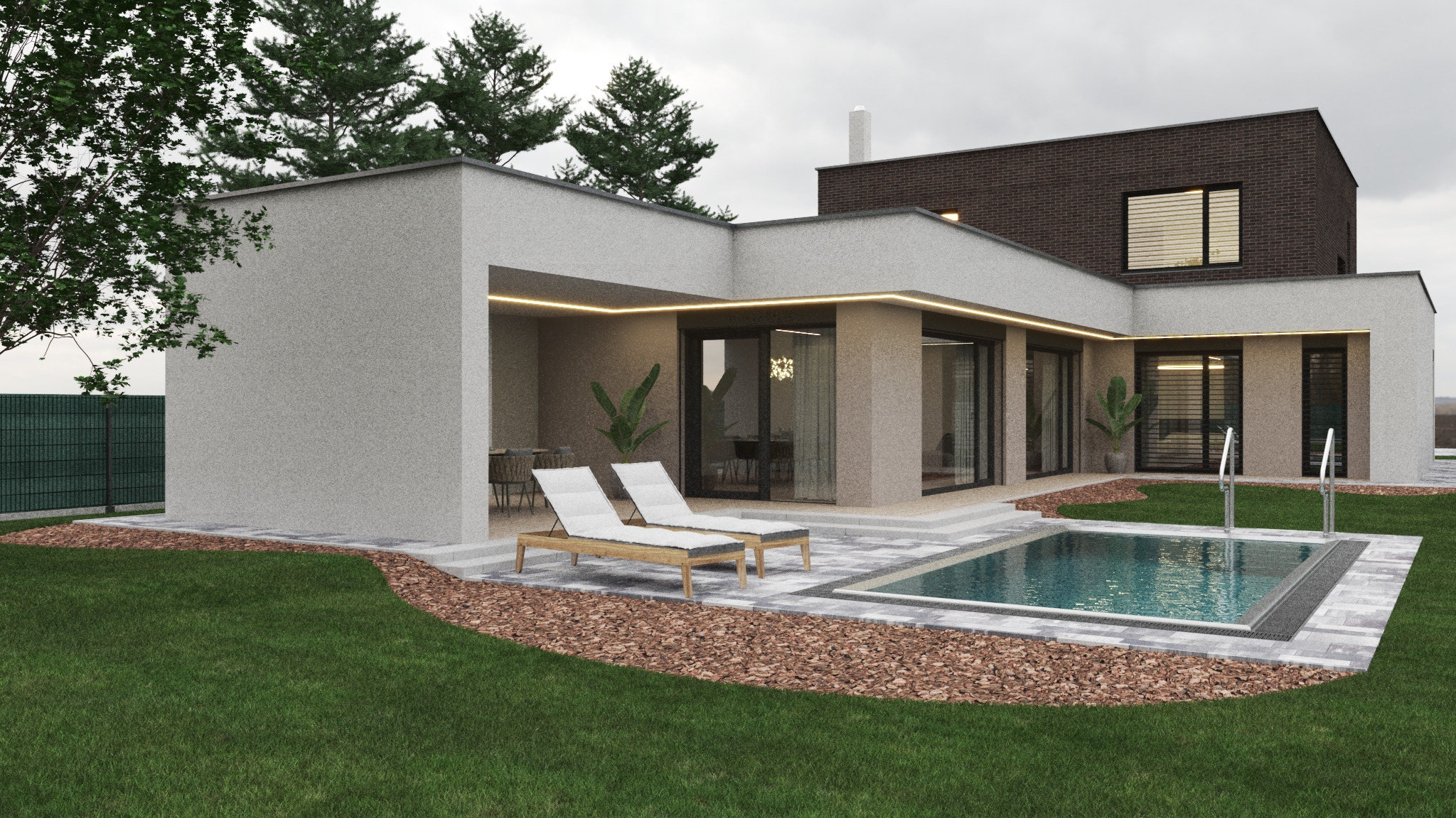 render a photorealistic 3d perspective of this house in a slovakia reference the current material style just enhance them keep model geometry the same windows doors roof walls garage door pavement driveway make a lush vegetation that looks native to truckee ca do not change the view only enhance the current materials and make the landscape nicer vegetation detailed textures in the wood siding and glass reflections and render in hyper realistic architectural visualization quality 8k resolution