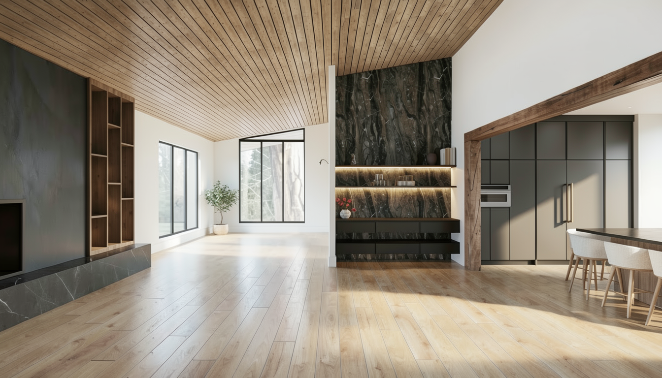 modernist exterior shot no change except make the frame of the canevas black architecture