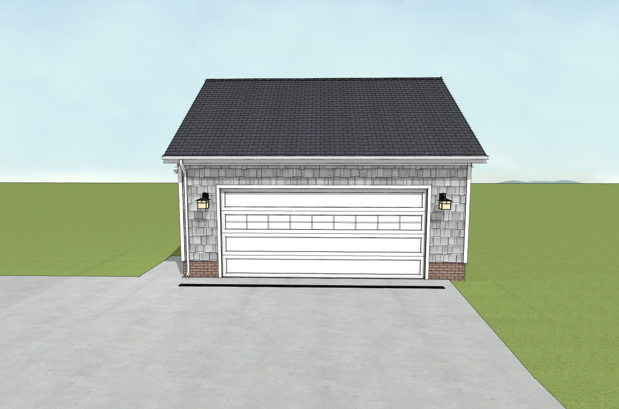 add plants one red car a small weiner dog garage door walnut wood sunny day with lots of clouds no bushes kid playing basketball with kobe 11 s