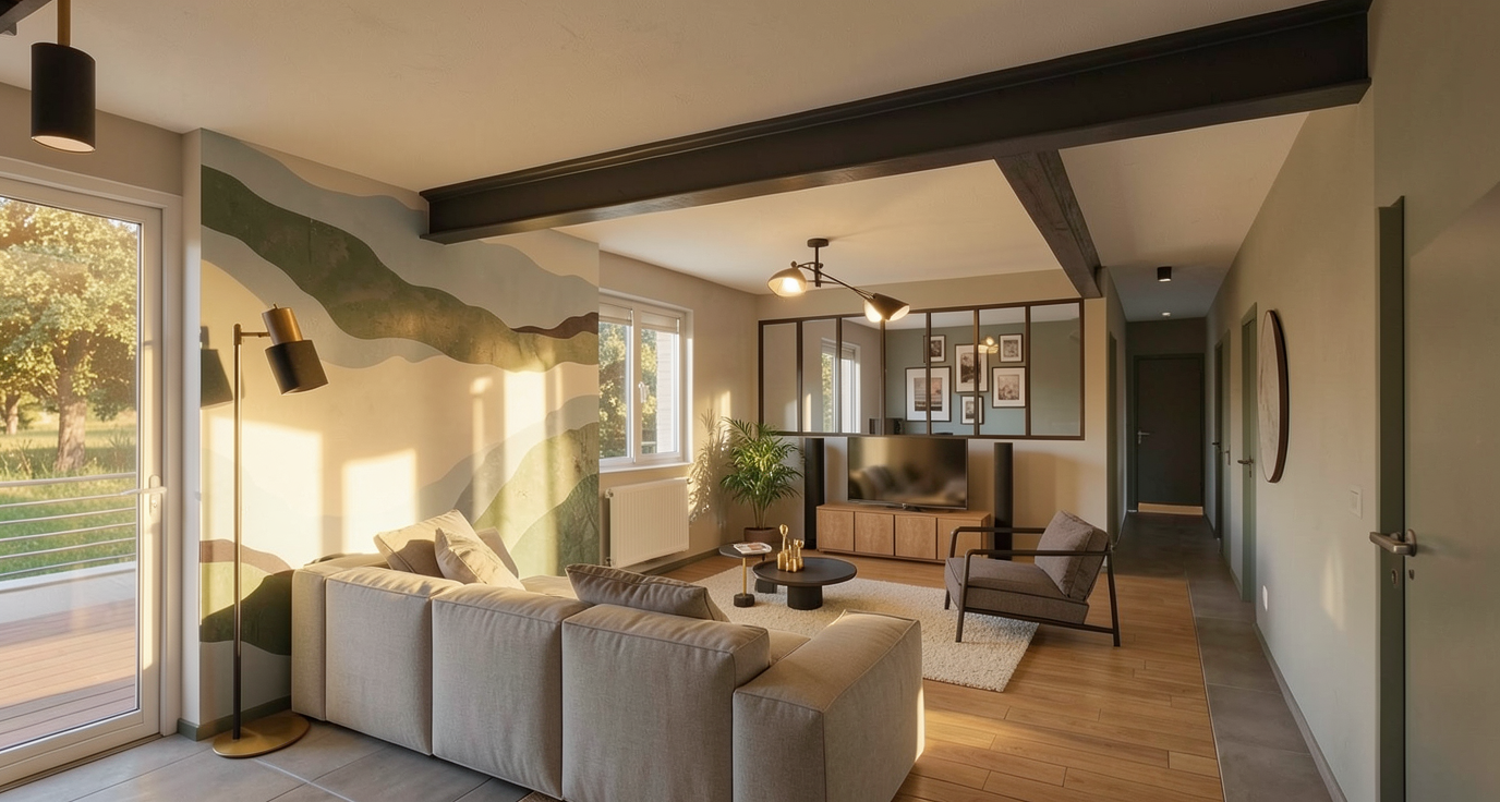 move chandelier back so it is in between the roof windows on the ceiling and hang it from an oak beam