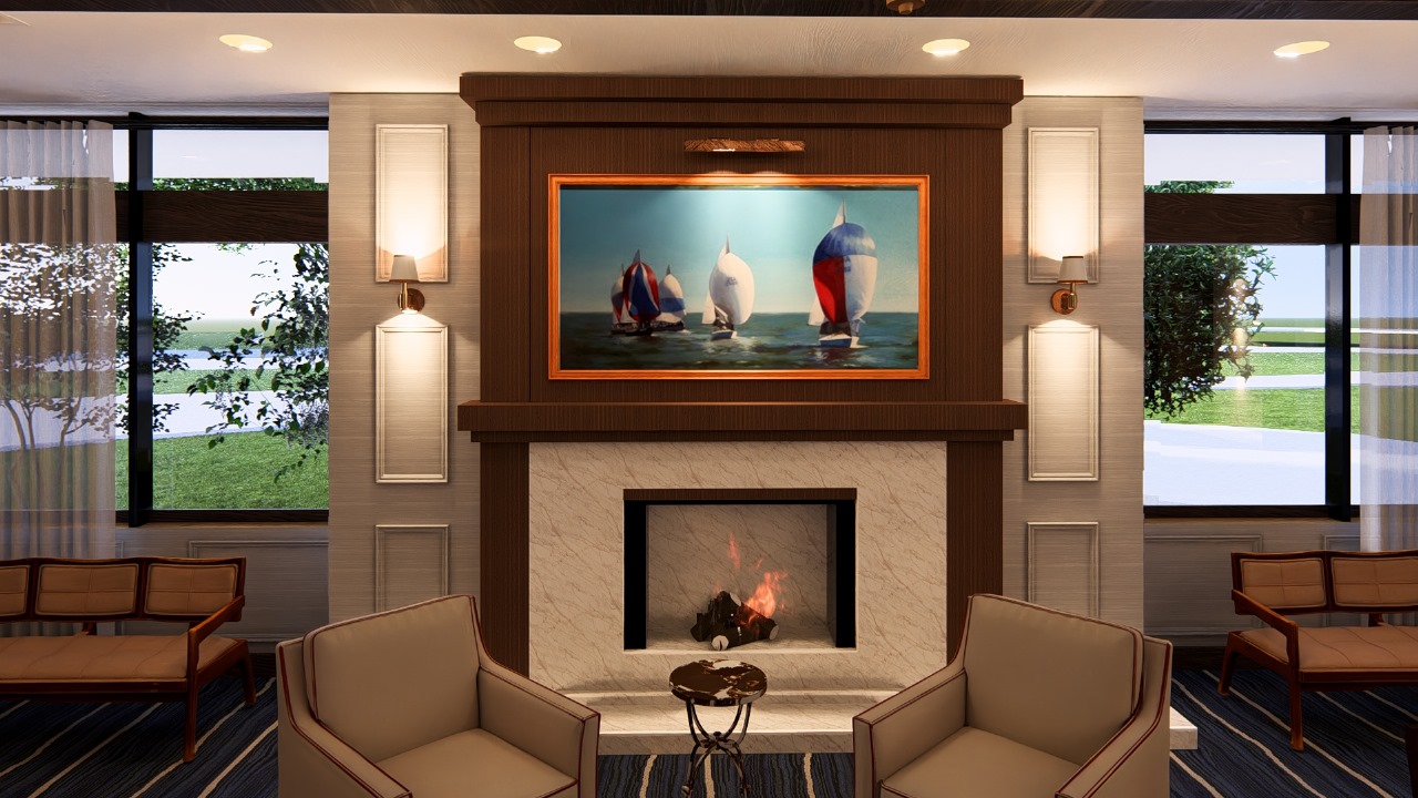 a view of a fireplace in a sleek and elegant lounge clubroom architecture