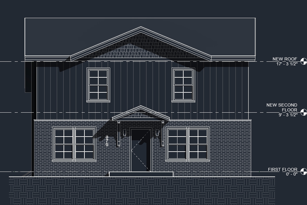 a modern two story farmhouse with white brick grey vertical board and batten siding and matching grey cedar siding in the gable and as shown on the image retain the exact structure and proportions exactly as shown in the reference image realistic render with trees around the home surround the property with a lush dense forest of tall mixed evergreens and hardwoods place the sun behind the trees so warm golden sunlight beams through the branches casting soft rays and subtle dappled highlights across the patio siding and grass create ultra realistic lighting crisp shadows detailed textures in the wood siding and glass reflections and a vibrant clear sky with light atmospheric depth render in hyper realistic architectural visualization quality 8k resolution