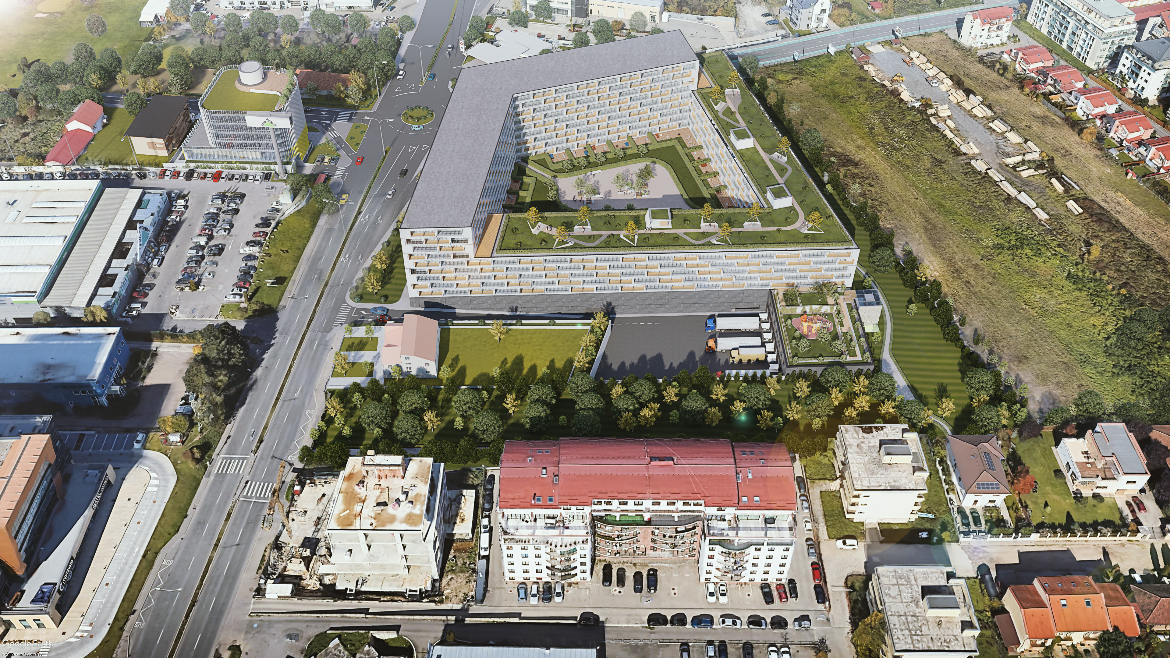 important preserve the existing geometry and the existing context exactly as provided do not modify alter reinterpret add remove scale or reshape any geometry do not change the site surroundings street layout neighboring buildings vegetation or context elements do not modify geometry scale proportions buildings road layout sidewalks or surrounding context in any way do not change text photorealistic architectural rendering clean and balanced contrast calm cinematic mood style contemporary european residential architecture minimalist premium understated delet all cars and people existing include people and cars subtle motion blur for realism