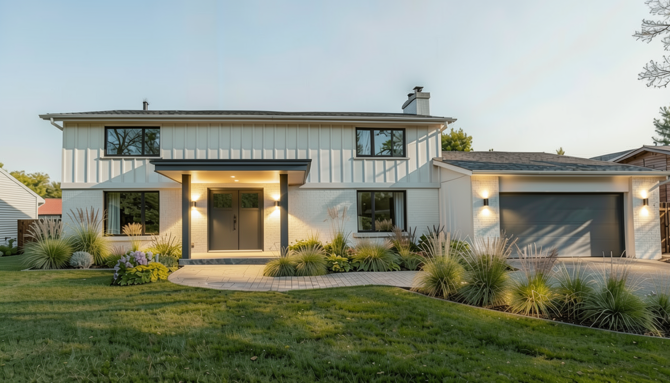 keep the structure the same with only the following changes lower the intensity of the house exterior lights