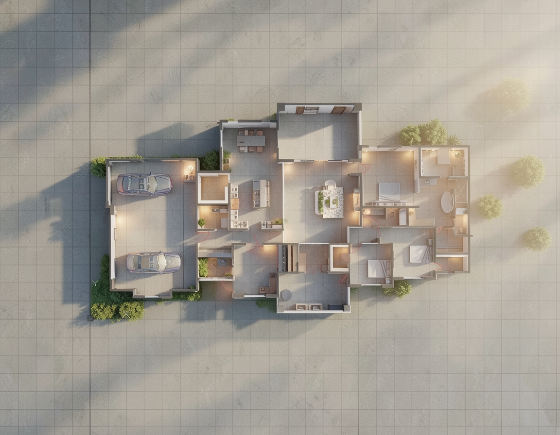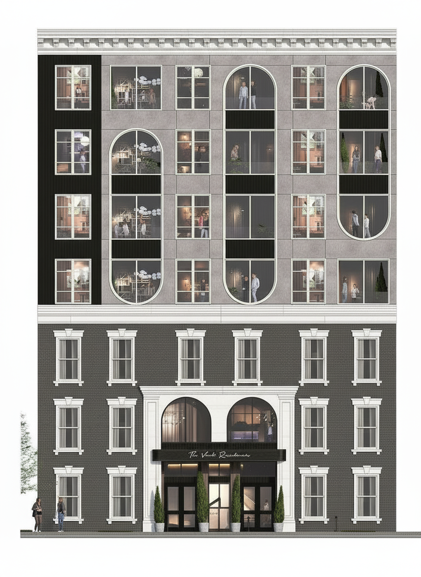 create a soft white exterior that is majority brick the roof color is a brownish orange the front door is muted green the front porch railing is iron