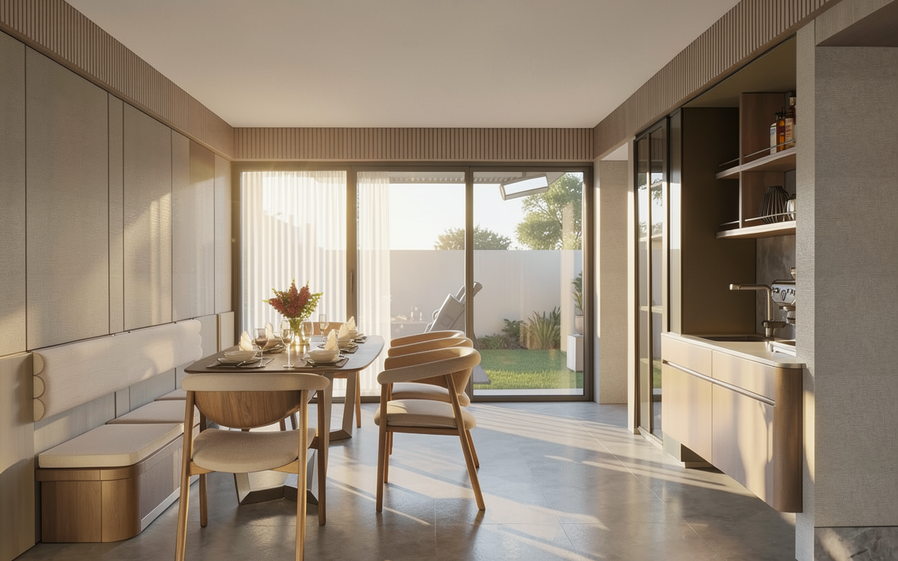 interior from the top top view rendered architectural floor plan keep original floor plan layout modern residential interior design warm wood flooring soft beige and neutral tones minimal furniture styling clean architectural diagram soft shadows professional interior design presentation architecture