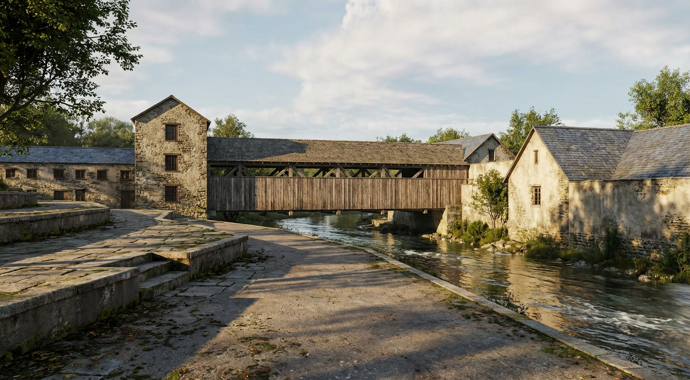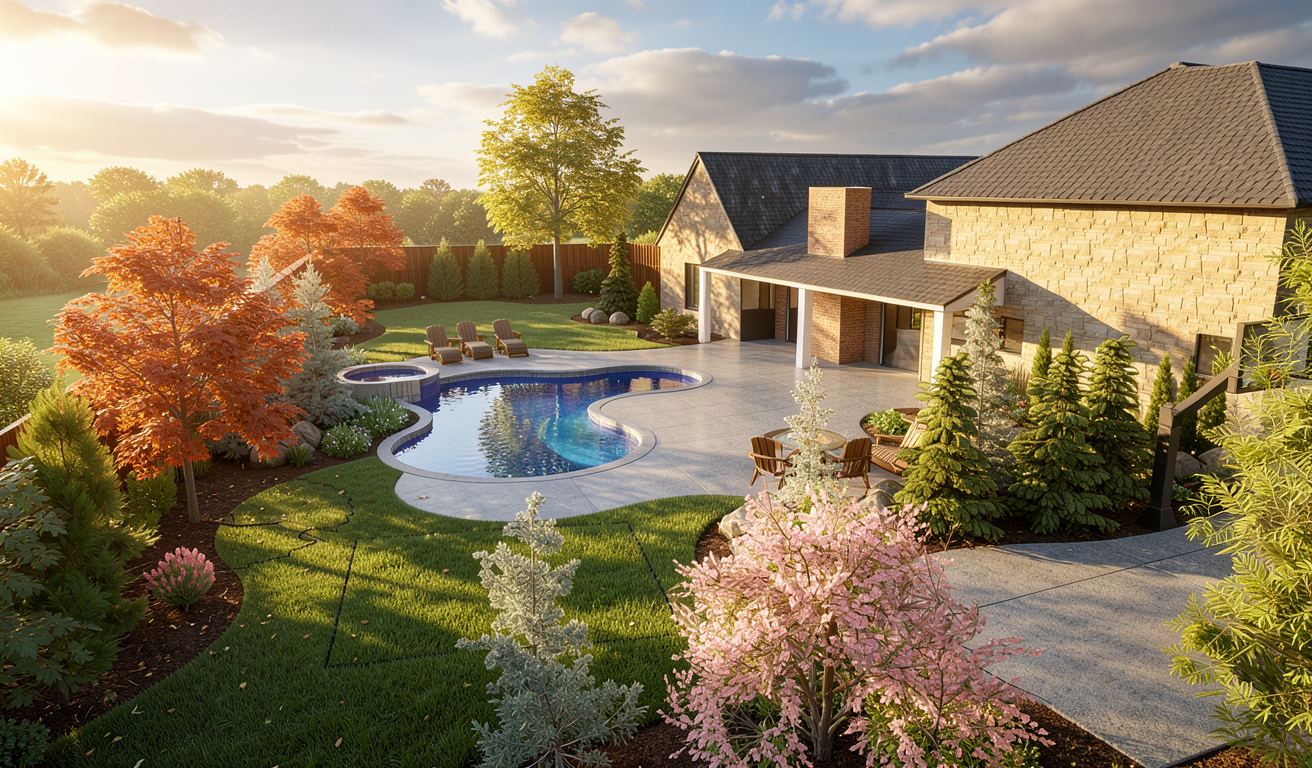 change the time of day to dusk add a chaise lounge that is close to the camera away from the cabinets and facing to the right of the scene