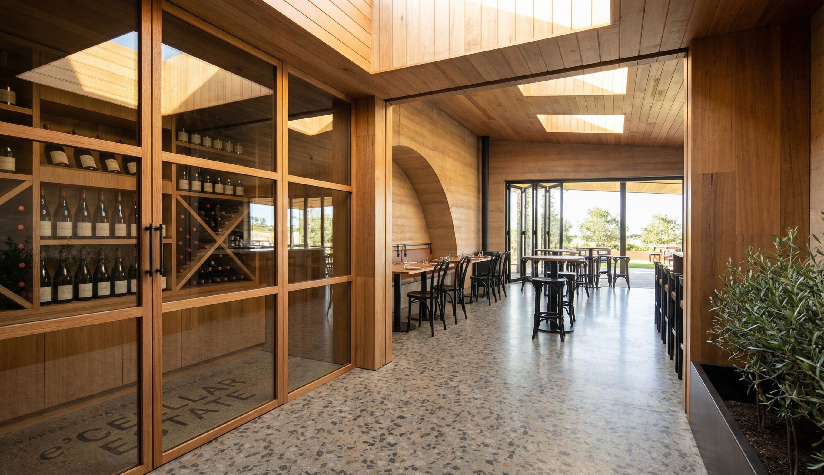 nordic exterior shot blank white background all grey terrain to be wild grasses with aspen trees mountain home look hand rendering black and white including the stone masonry with sun shining on entry the ground drops off behind the house architecture
