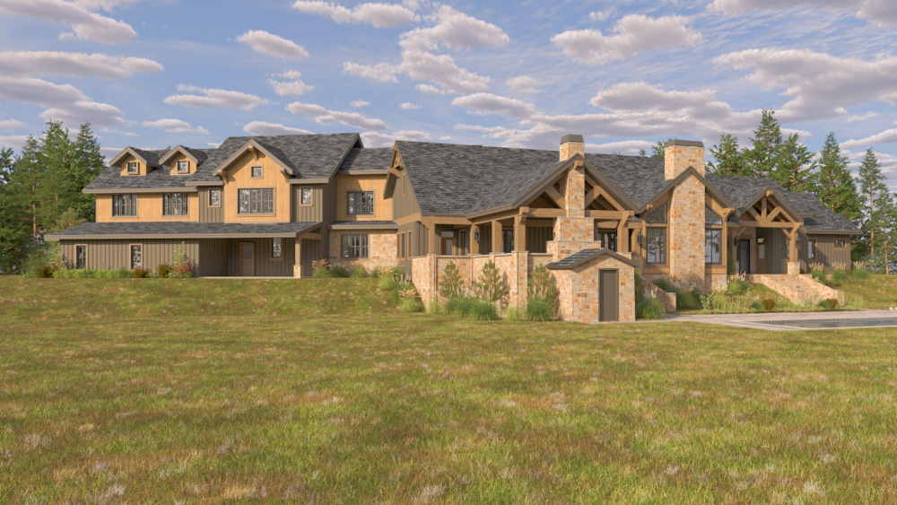 make photoreal rendering decrease intensity of sun do not make sun visible in camera keep contrast of colors in materials add clouds to sky not so bright exposure do not put building in shadow less shadow in foreground sun comes from left side of image offscreen keep sun behind camera