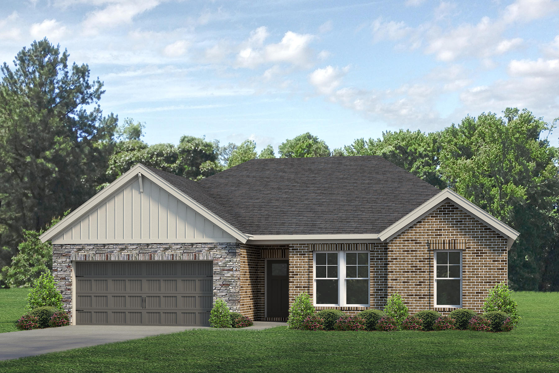 make this rendering more interesting but do not change the colors or any structural aspects of the home maybe turn the home to a different angle