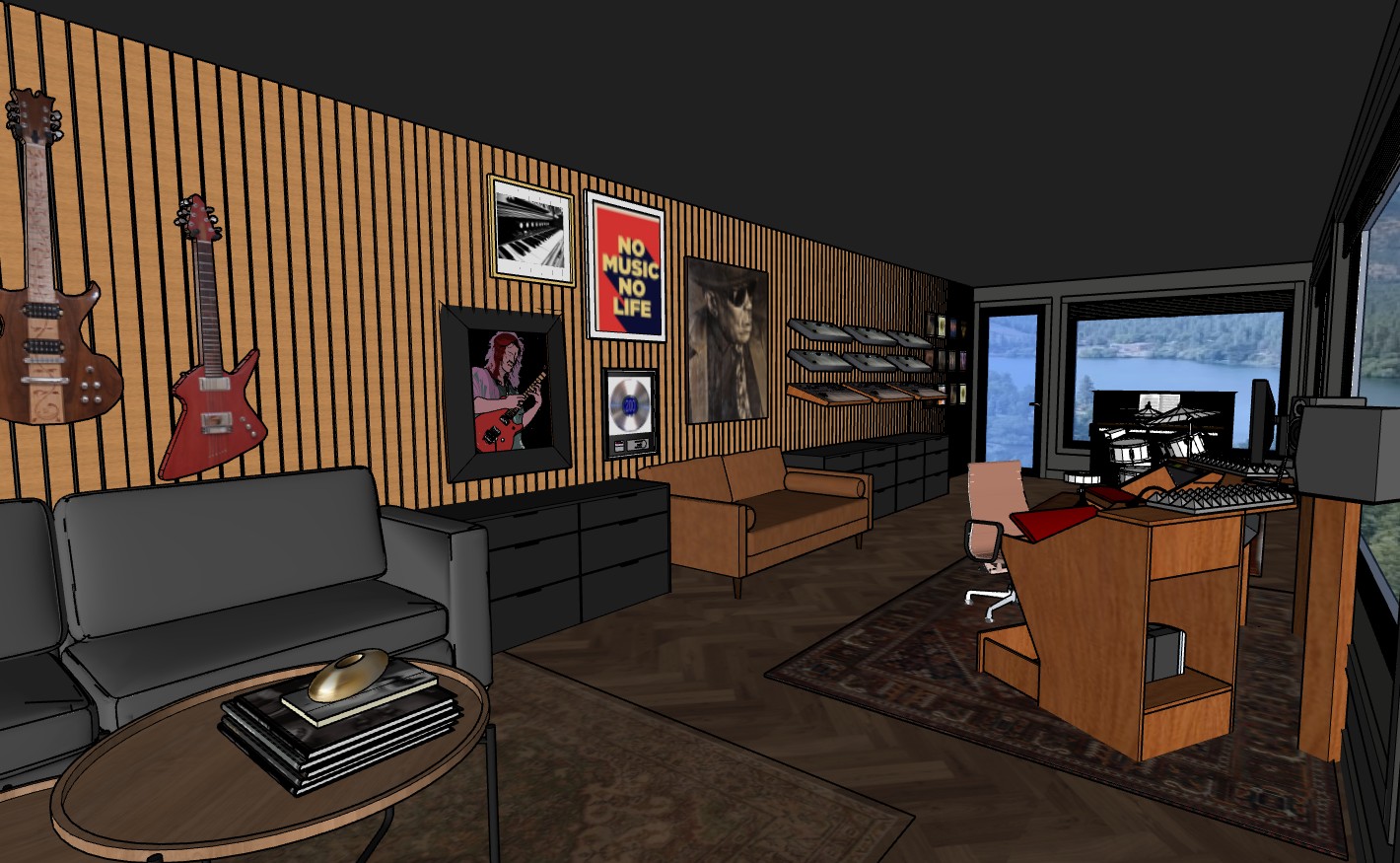 moody music studio with natural light