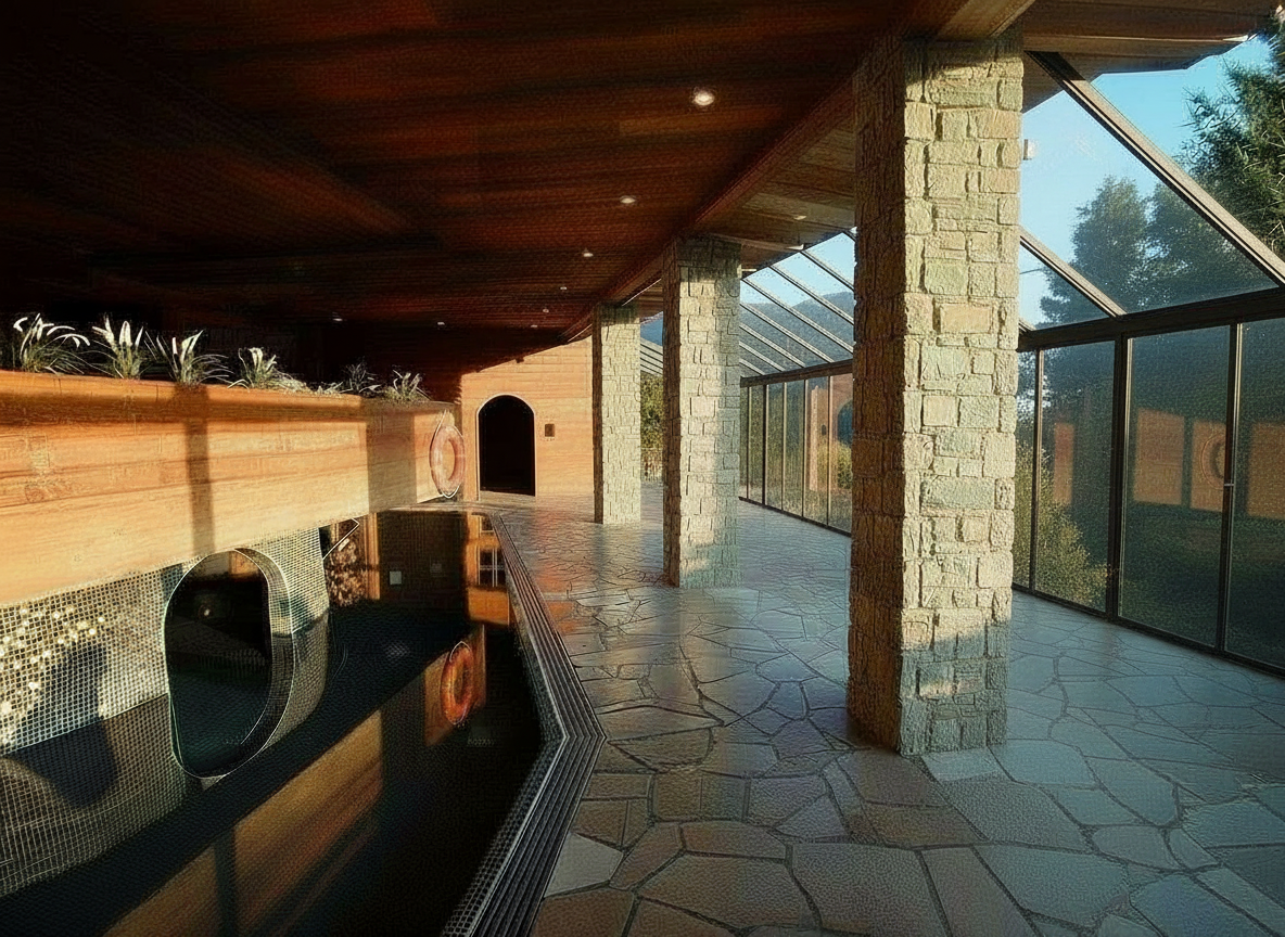 add ethimo sunbeds to winter garden right change ceilings to black glossy barrisol