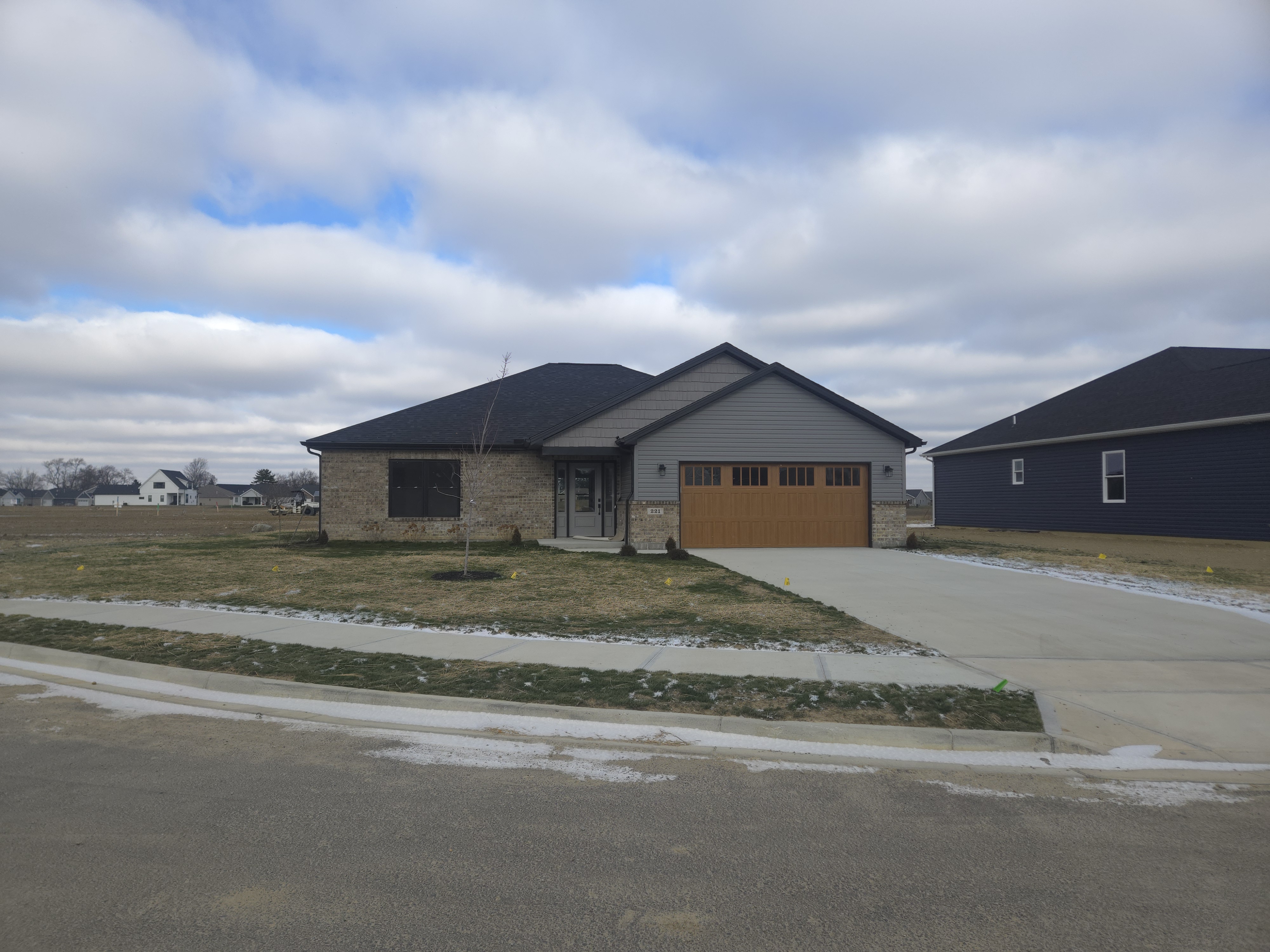 make the photo have green grass brighter sky keep everything on the home the same