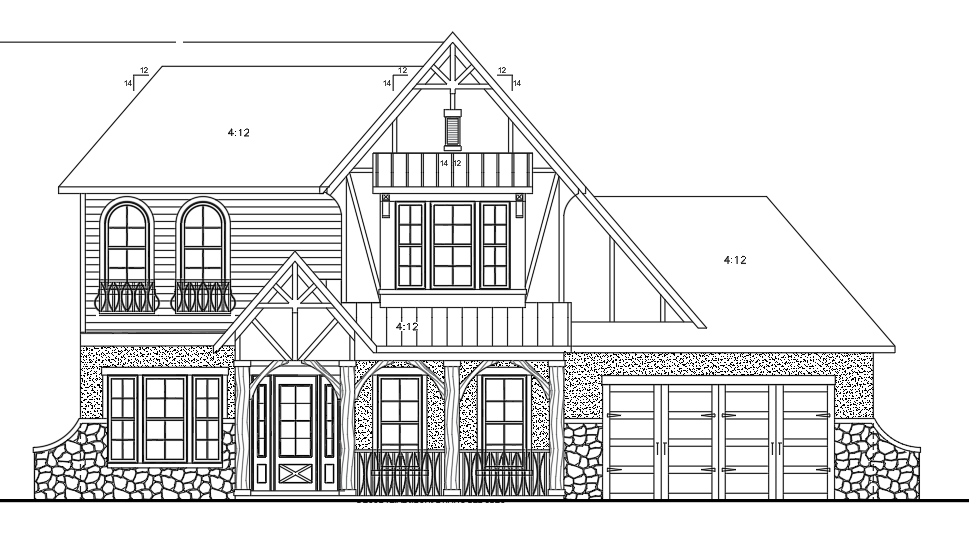 render a charming two story house with a modern european tudor design the roof is a warm slate gray contrasting with the crisp white exterior walls the wooden elements and framing are in rich cedar brown adding warmth the stone accents at the base are in a natural earthy tone of light gray and brown windows are adorned with black wrought iron railings the doors and garage feature natural wood patterns the atmosphere is serene set against a clear blue sky with soft sunlight casting gentle shadows to create a cozy inviting ambiance