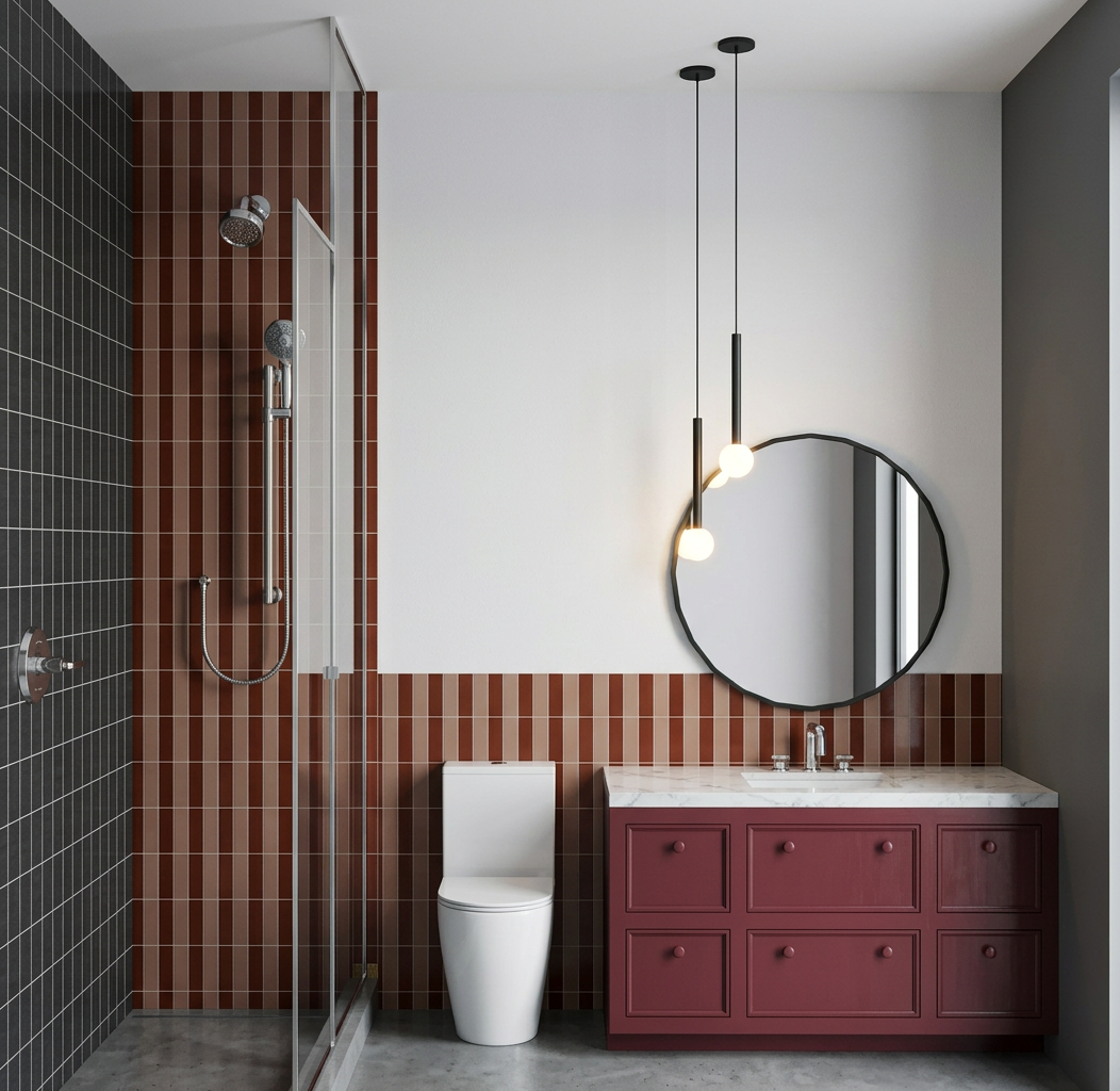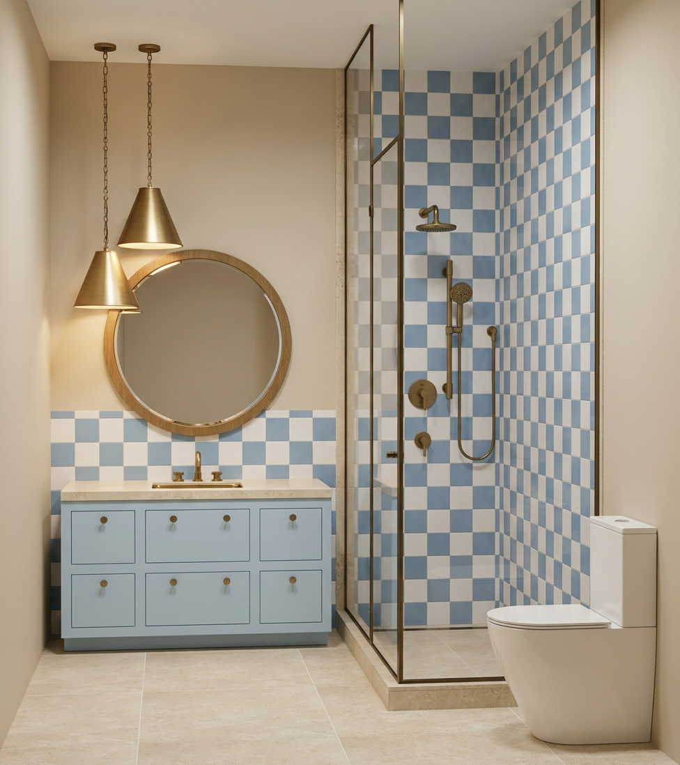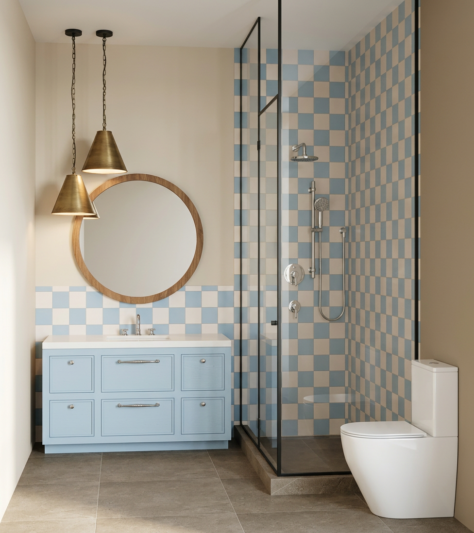 floors should be beige tile left wall in shower should be the same as the showerhead wall the right wall should be painted white