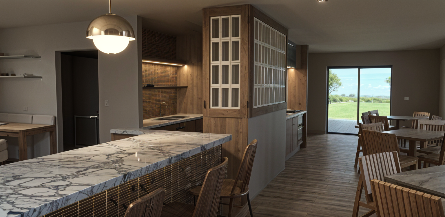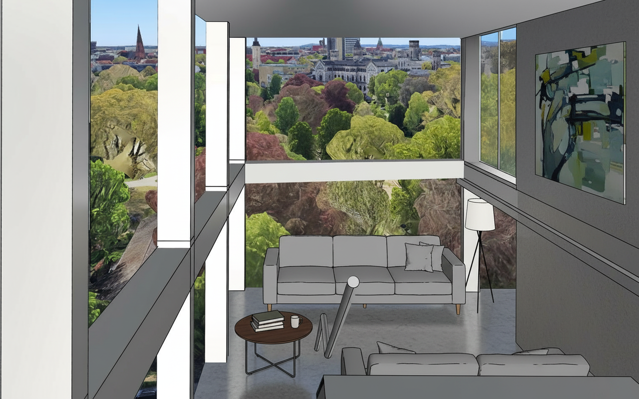 render in a realistic way with natural light raking in from the windows and door the walls are white and the floors are natural white oak