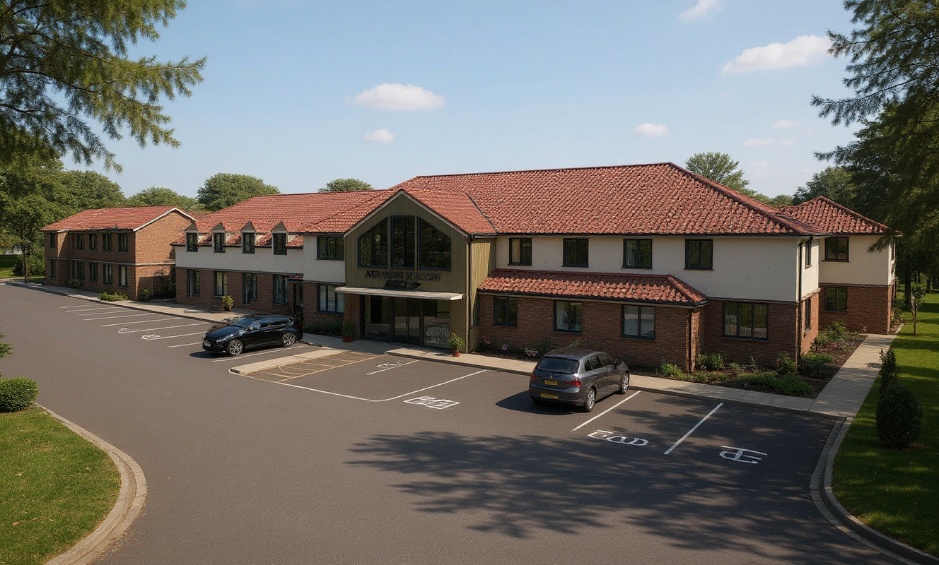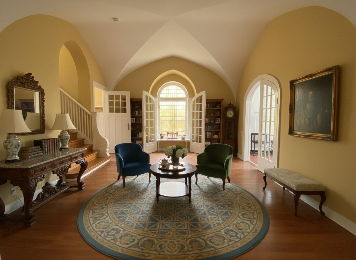 a serene modern interior hallway with warm neutral tones the walls are a soft beige creating a calming atmosphere the wooden floor has a light oak finish presenting a natural earthy feel a sleek open staircase with dark wooden steps and minimalist metal railings contrasts elegantly with the pale surroundings at the end of the hallway a soft ambient light filters through suggesting a welcoming cozy living area adorned with contemporary art the overall mood is tranquil and inviting with an emphasis on simplicity and harmony architecture