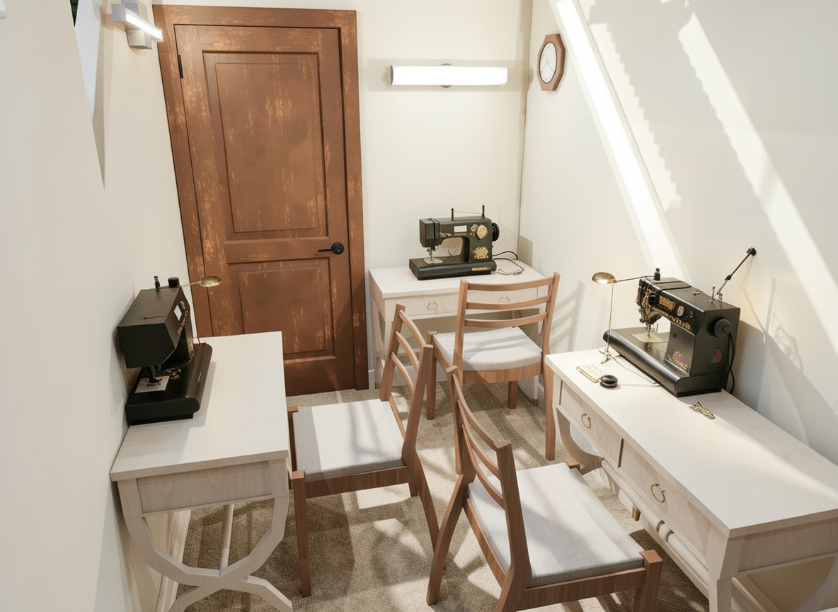 place some ballet costumes hanging from the two ceiling rods and some ballet slippers in the cubbies