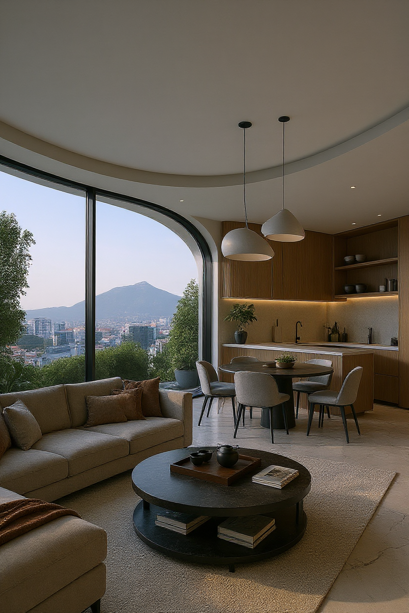 desaturate the floor so it gets close to a light grey make the concrete texture on the wall above the kitchen softer and lighter with 70