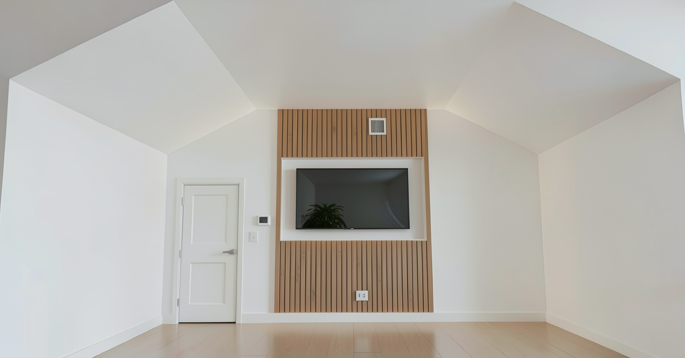 white board and batton siding in the roof peaks 2nd floor garage lap siding everywhere else black roof in a forest