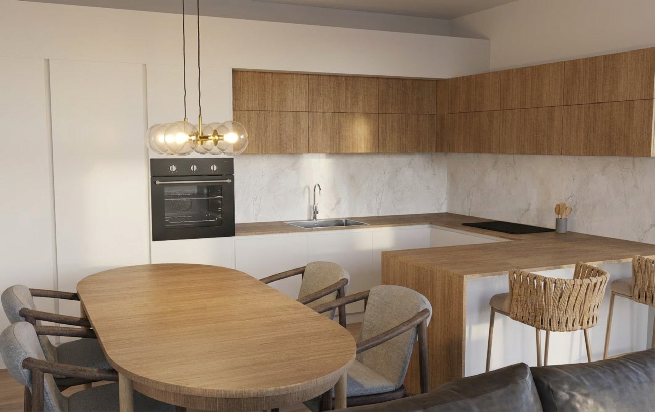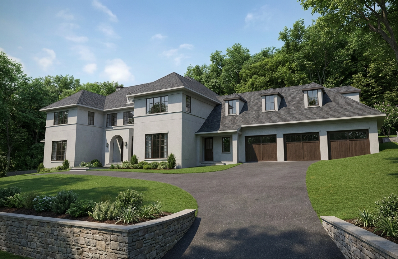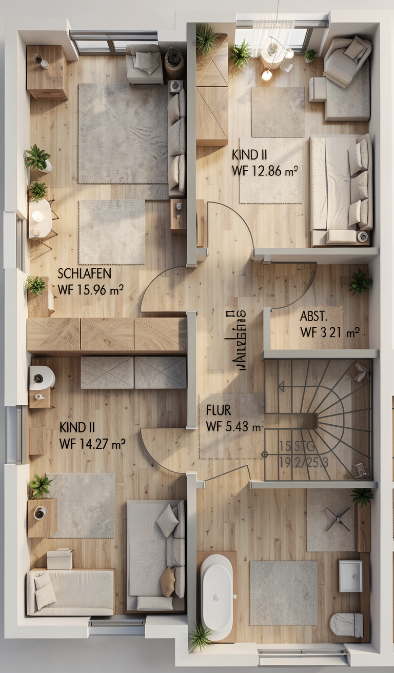 keep everything exactly the same in the rendering do not change the layout walls doors windows shower niche plumbing fixtures wall tile lighting vanity or any materials only change the size and scale of the floor tile the floor tile should be the same exact material and color but the tile size should be changed to large format rectangular tiles approximately 16 x 32 reduce the number of grout lines so the tiles appear larger keep the tile layout straight do not change the tile material color layout direction or anything else only change the the tile on the floor and walls to look more realistic and we be a warmer white with a vertical grain do not change the scale of the tiles shape or size keep everything else exactly the same do not add anything else make the final image look like a realistic photo rendering with natural lighting and soft shadows