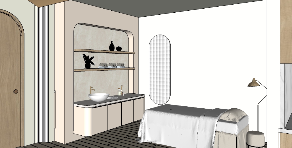 create ultra realistic images without changing any structure shape design or materials do not resize jpegs beige wood vinyl flooring plain off white walls off white ceiling white bed add indirect light and in wall is mirror white marble to table