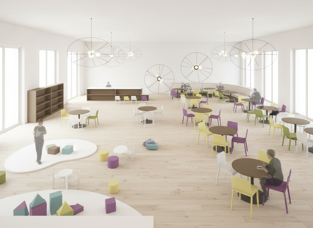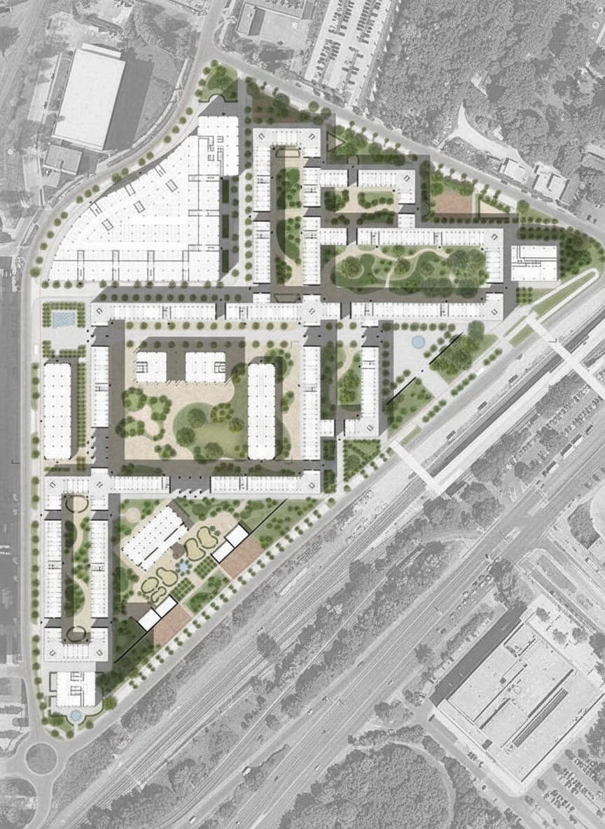 extend more square buildings on the empty area architectural trees grennery