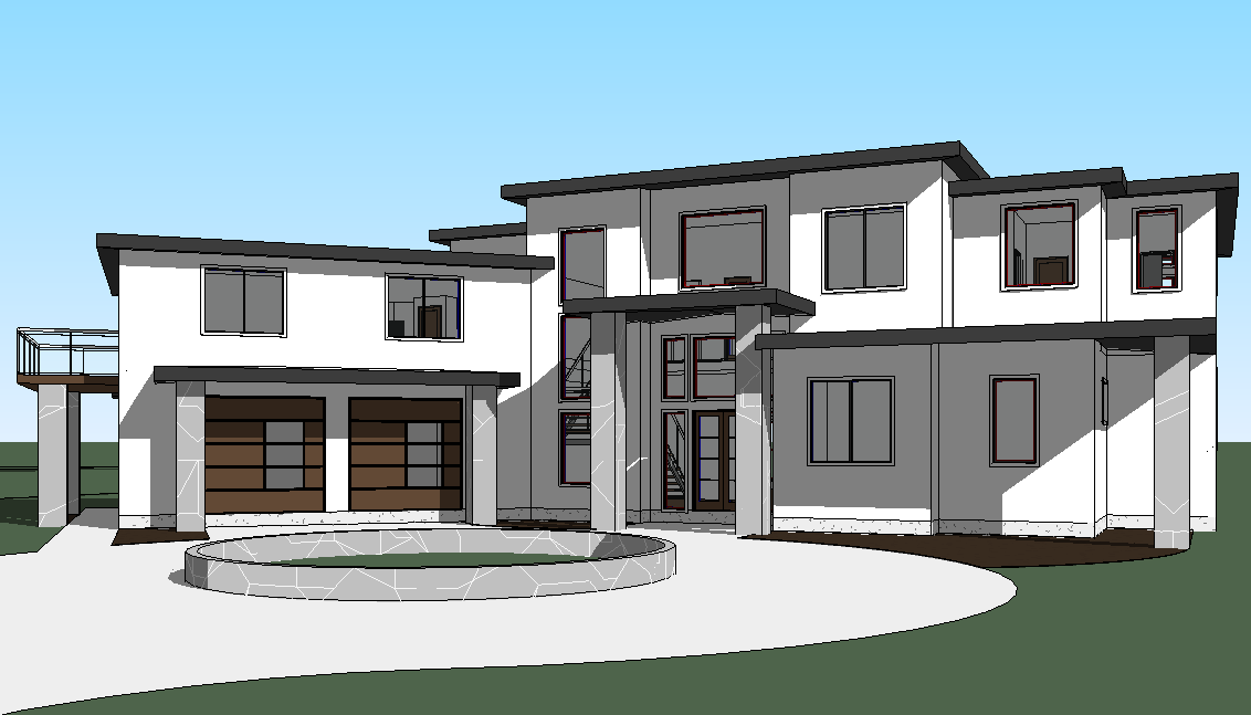 add natural lighting make look realistic there is a far away forest with a field of grass add minimal landscaping add a feature tree into the circle in the middle with landscaping around add landscaping into the dark brown areas