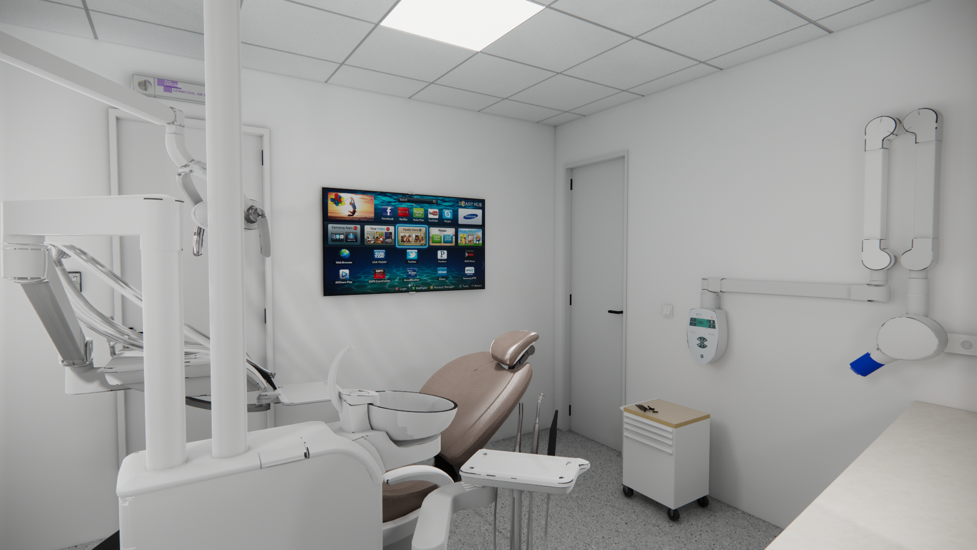 the edges of the dental unit and x ray unit are white tune fine the edges of the units delete the metal efect from the desk the unit chair leather is more gray the temperathur of the light is more cold the small cabinet under x ray is white with casmire desk