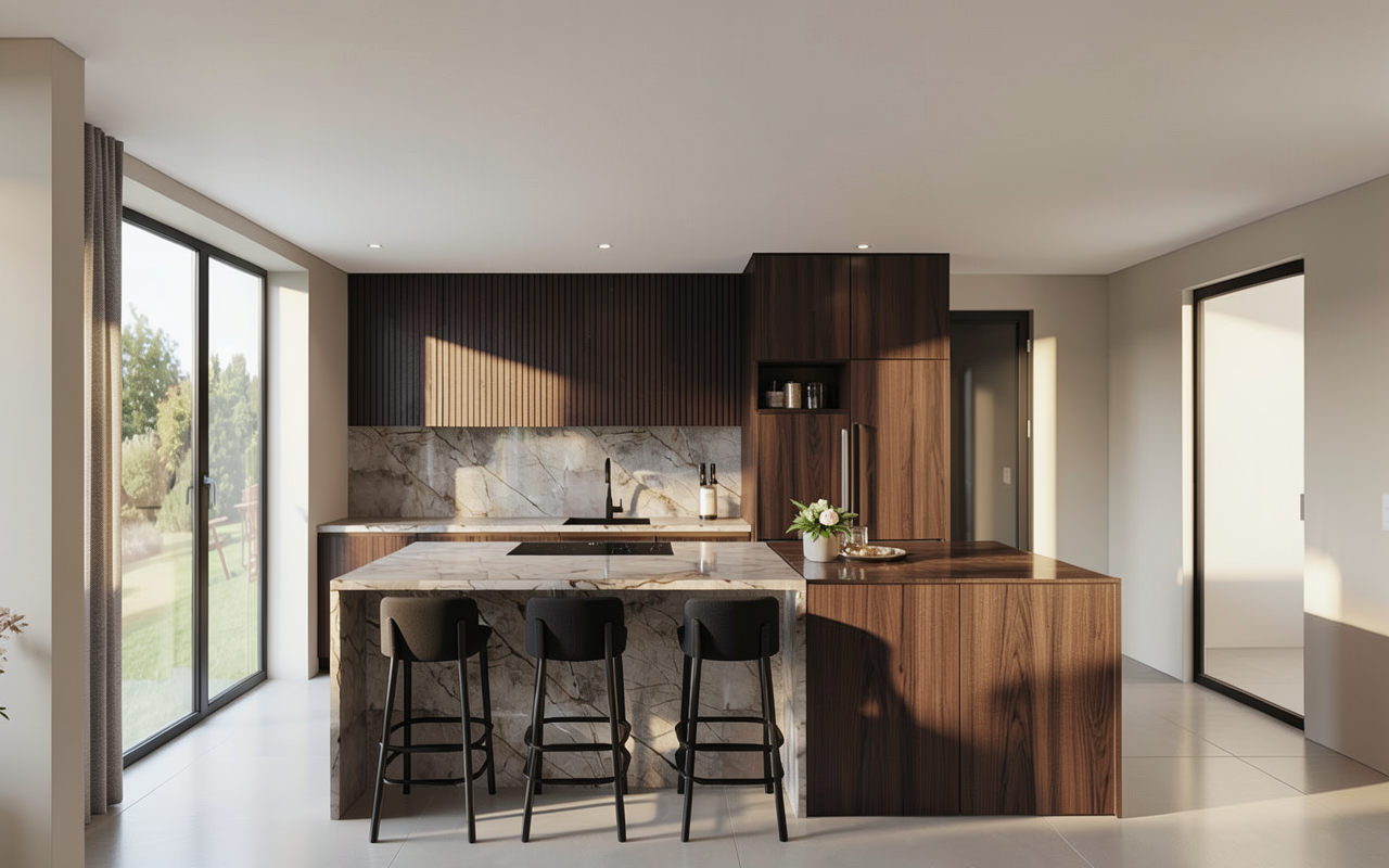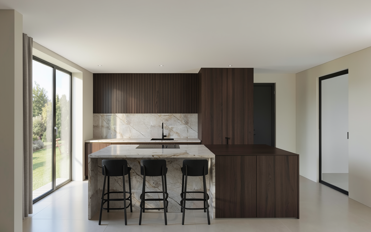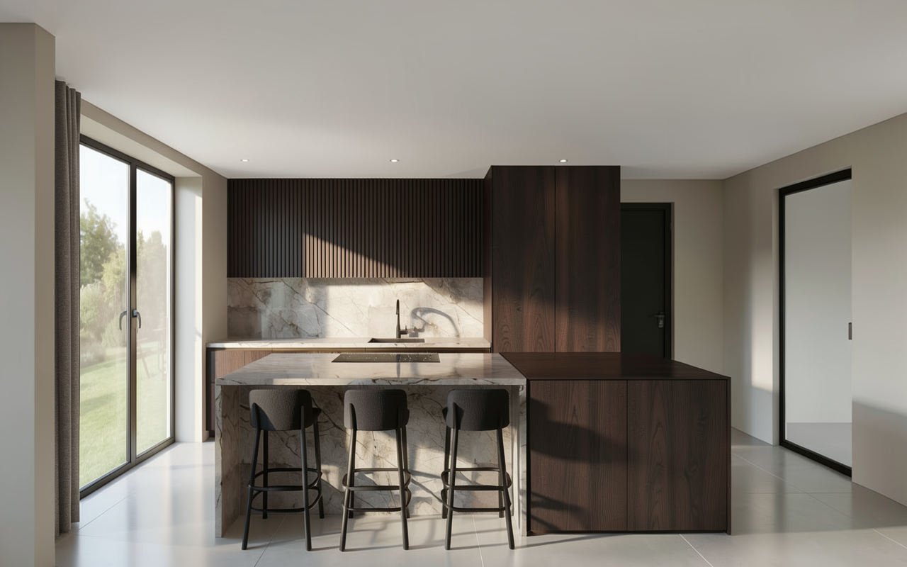 very dark plain modern oak luxury veneered cabinets