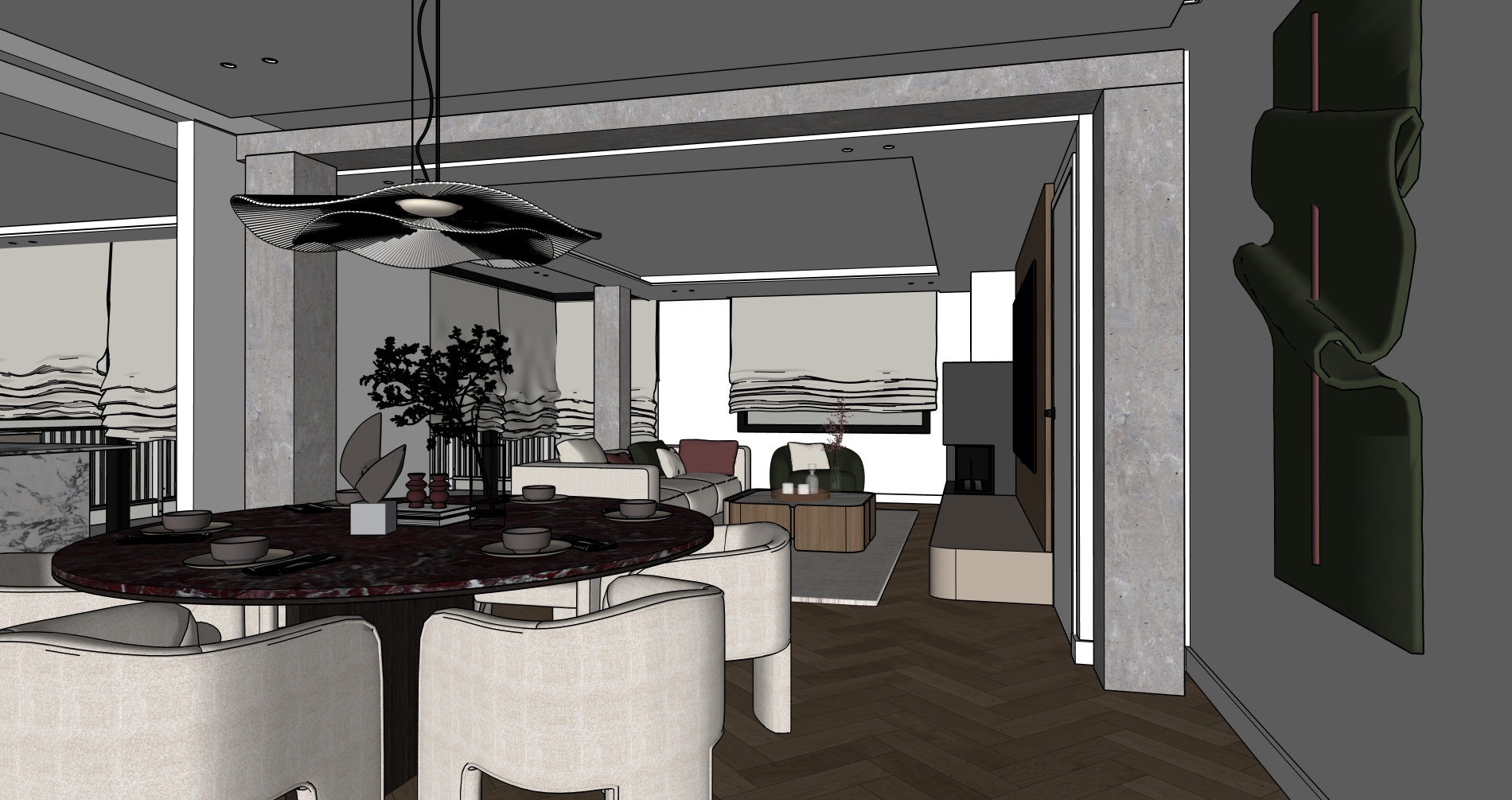 crea una imagen fotorealista a partir de este sketchup realza texturas e iluminacion