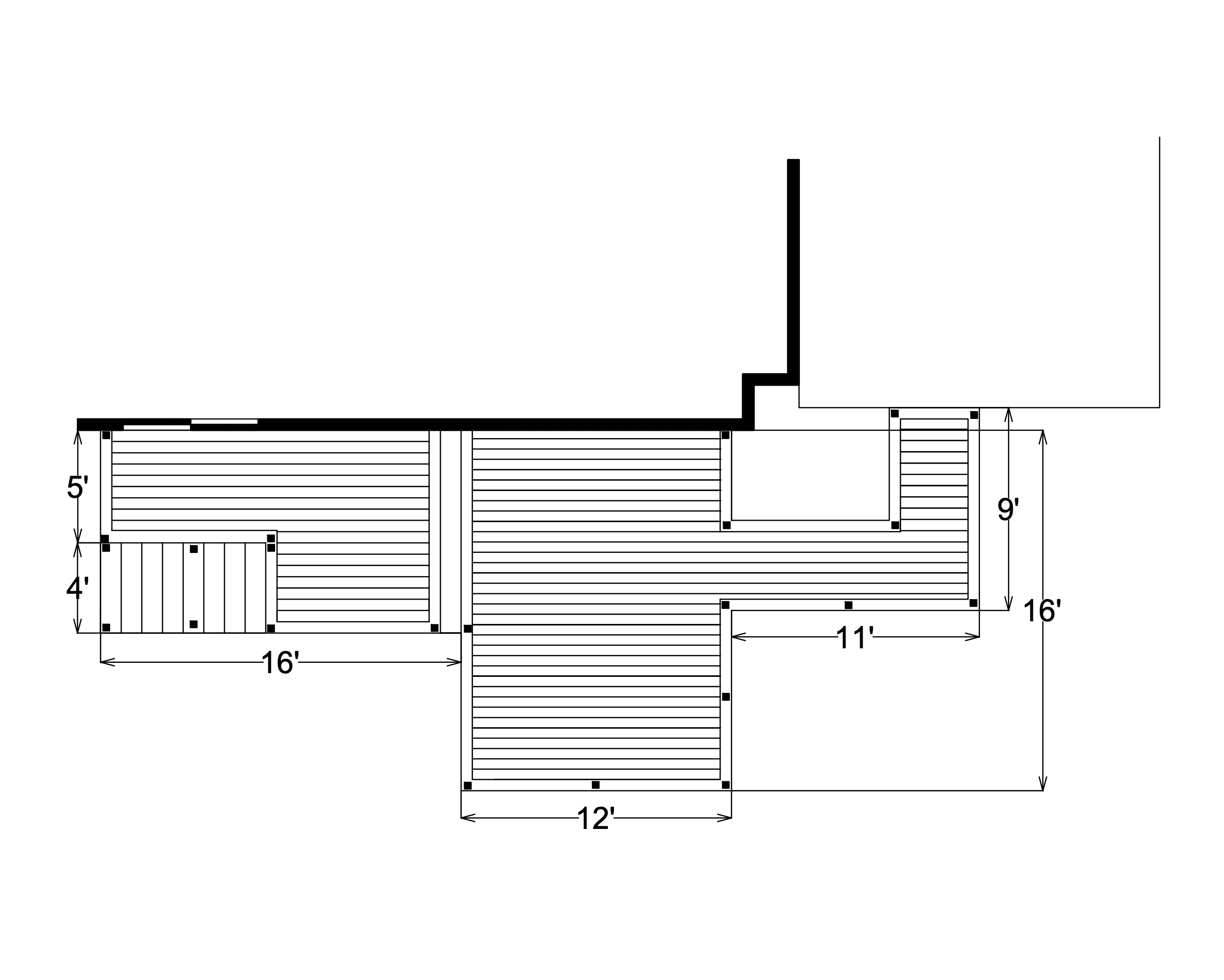 zaha hadid aerial shot create a deck model based on this aerial perspective drawing the dark line is indicating the house the right portion of the deck is 5 off of the ground and the left portion with the steps is 6 2 off of the ground architecture