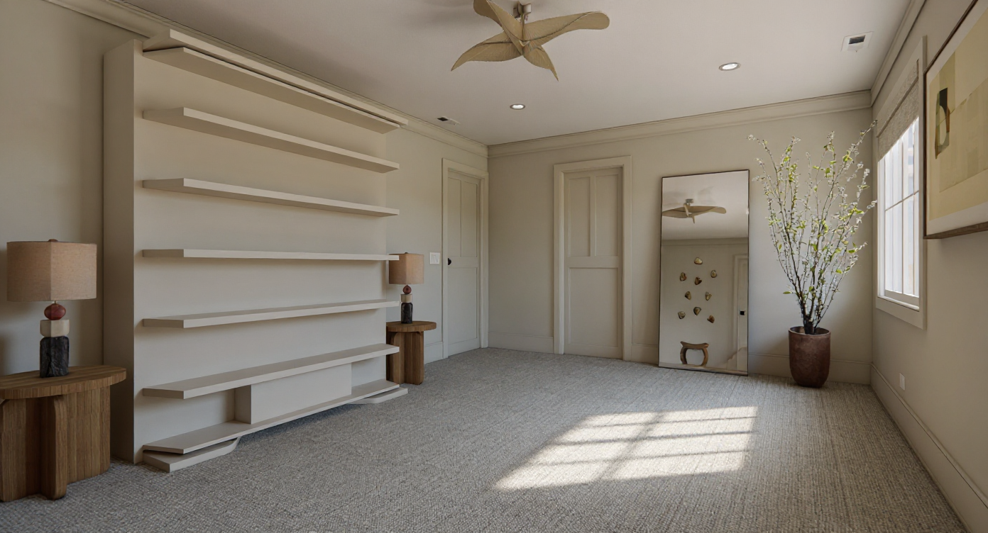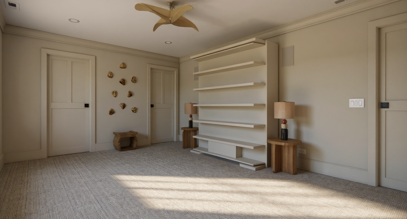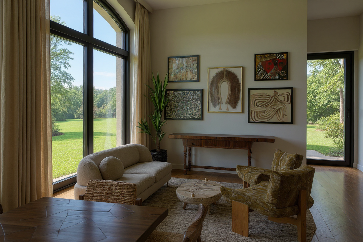 render this vignette add rust color sofa behind the table turn sofa around to show the back