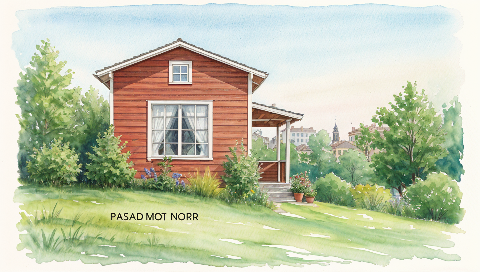 watercolors window frames lots of greenary architecture