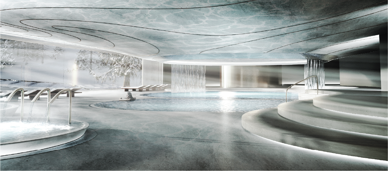 make the image look realistic add real details like architecture magazine photo keep winter landscape in the outside of glass facade