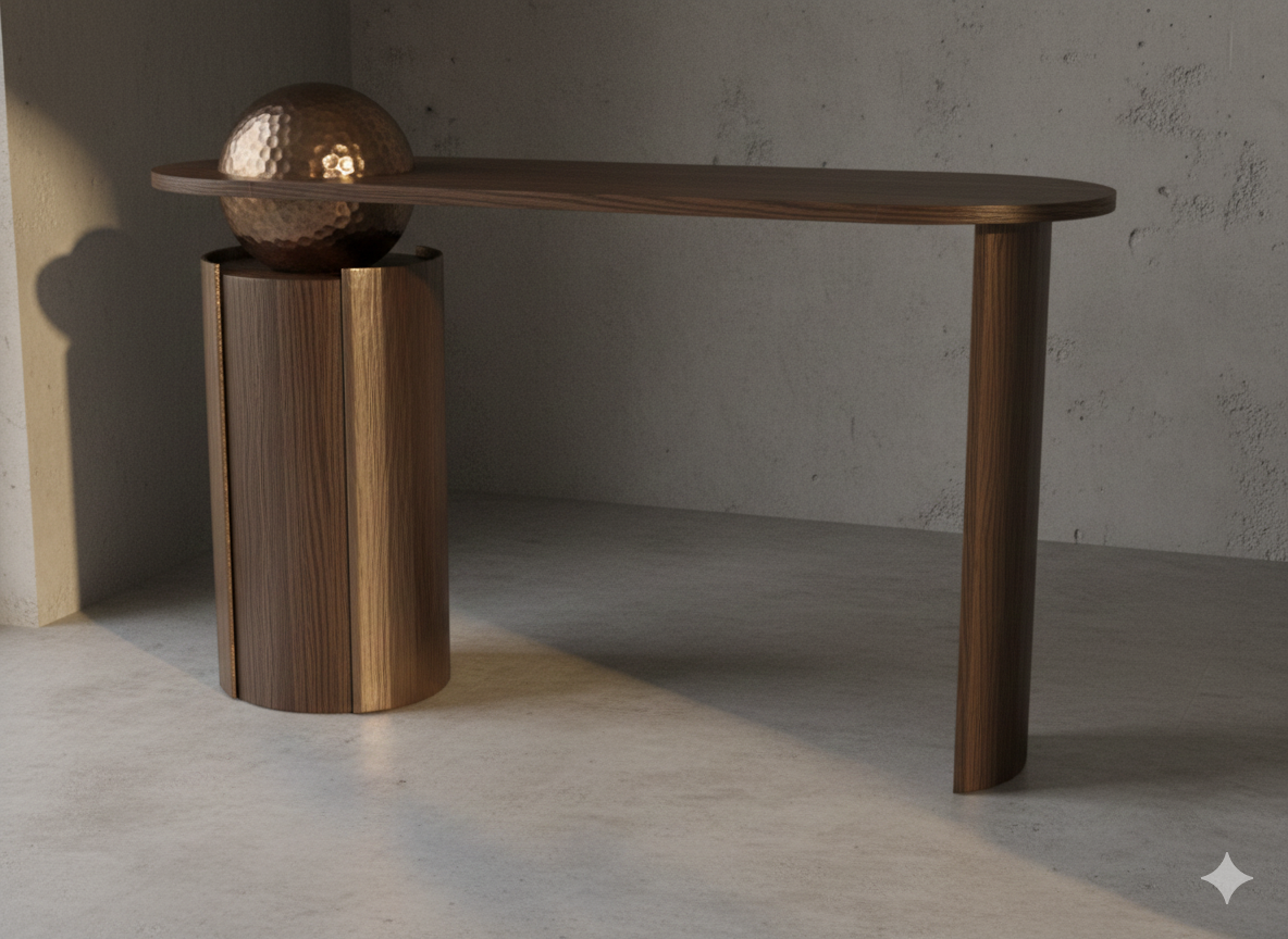 put this table in a luxury hotel room with floor to ceiling windows just include the table and a person seating at this table from the back no bed no other furniture make a photo realistic render of this image keep all the details make it seamless as if it is a photo keep soft warm natural light as if its golden hour don t change any materials or shapes of the structure