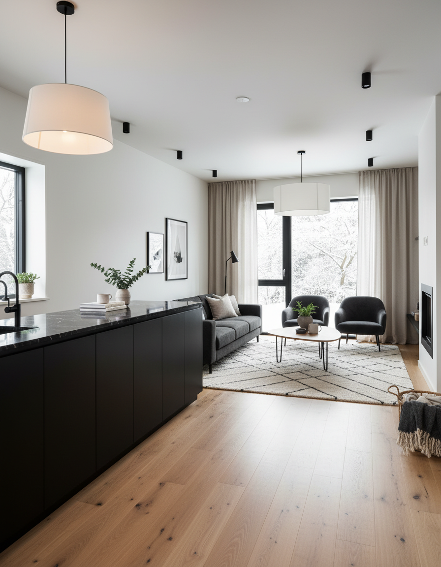 ultra photorealistic interior kitchen render based on the reference photo create a super realistic photographic result upper cabinets must be smoked glass display cabinets fum glass internally illuminated with soft warm integrated lighting add subtle under cabinet lighting below the upper units realistic and functional all finishes must remain highly realistic and true to real materials wood effect surfaces must be fluted walnut canalettato walnut vertical grooves natural walnut tone matte finish no gloss the wood must look authentic with visible depth and natural shadows between the flutes countertop and backsplash must be glossy porcelain stoneware polished gres porcellanato with realistic ceramic reflections glossiness must apply only to the countertop and backsplash not to cabinet fronts add a realistic modern coffee machine placed on the countertop in stainless steel or matte black finish well proportioned and integrated naturally into the scene add a few minimal everyday objects on the countertop for example cups a small tray a coffee jar or a cutting board objects must be limited in number well spaced and realistic enhancing scale and realism without cluttering the kitchen lighting must be physically accurate and balanced natural daylight combined with integrated artificial lighting no cinematic or dramatic lighting effects maintain realistic proportions materials edges joints and thicknesses architectural photography style eye level camera natural perspective 35 45mm focal length straight vertical lines high realism global illumination clean shadows professional kitchen catalog quality result