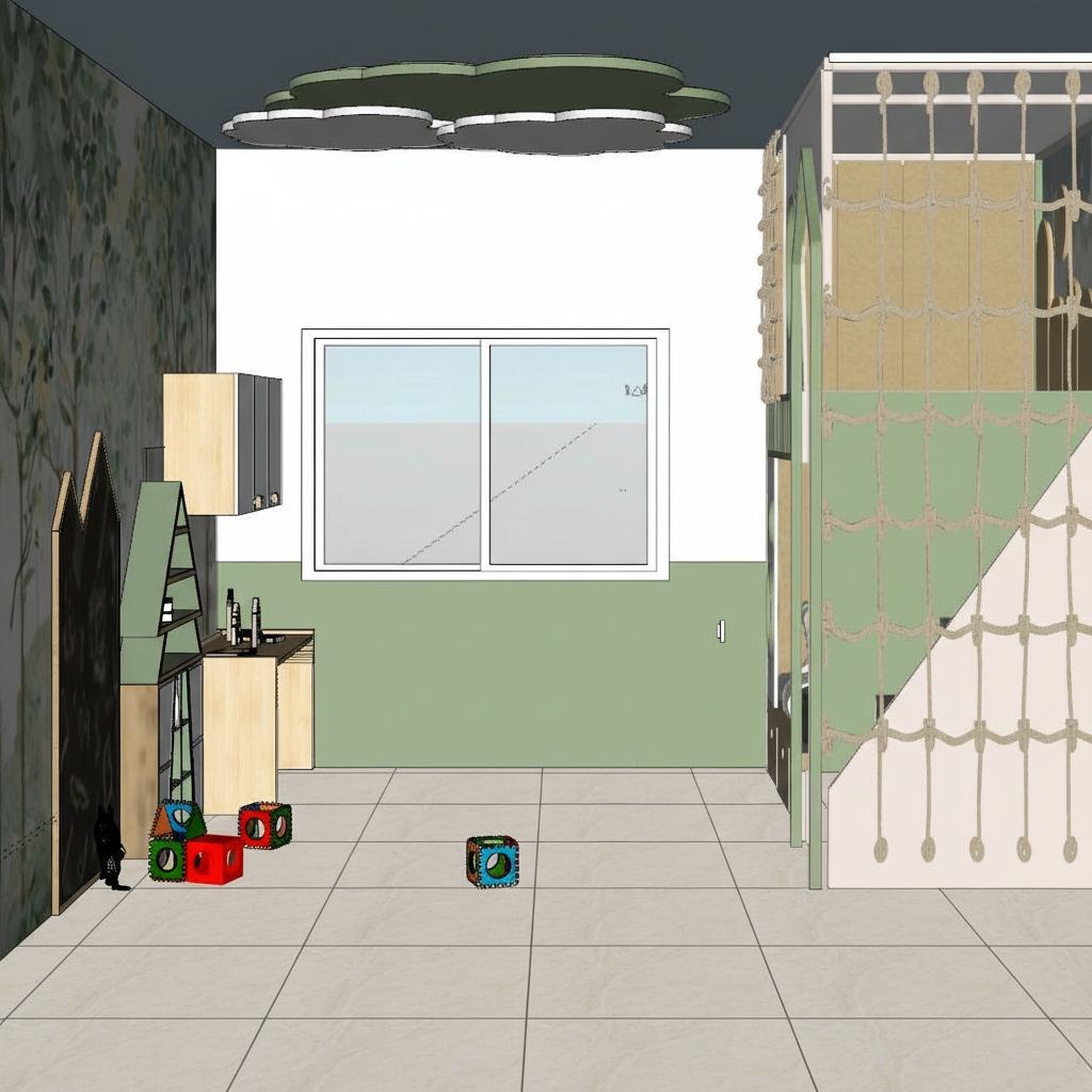 make as photorealistic as possible while keeping textures the same as selection professional landscaping in a lightly wooded scene with good lighting off white stucco dark brick dark roof
