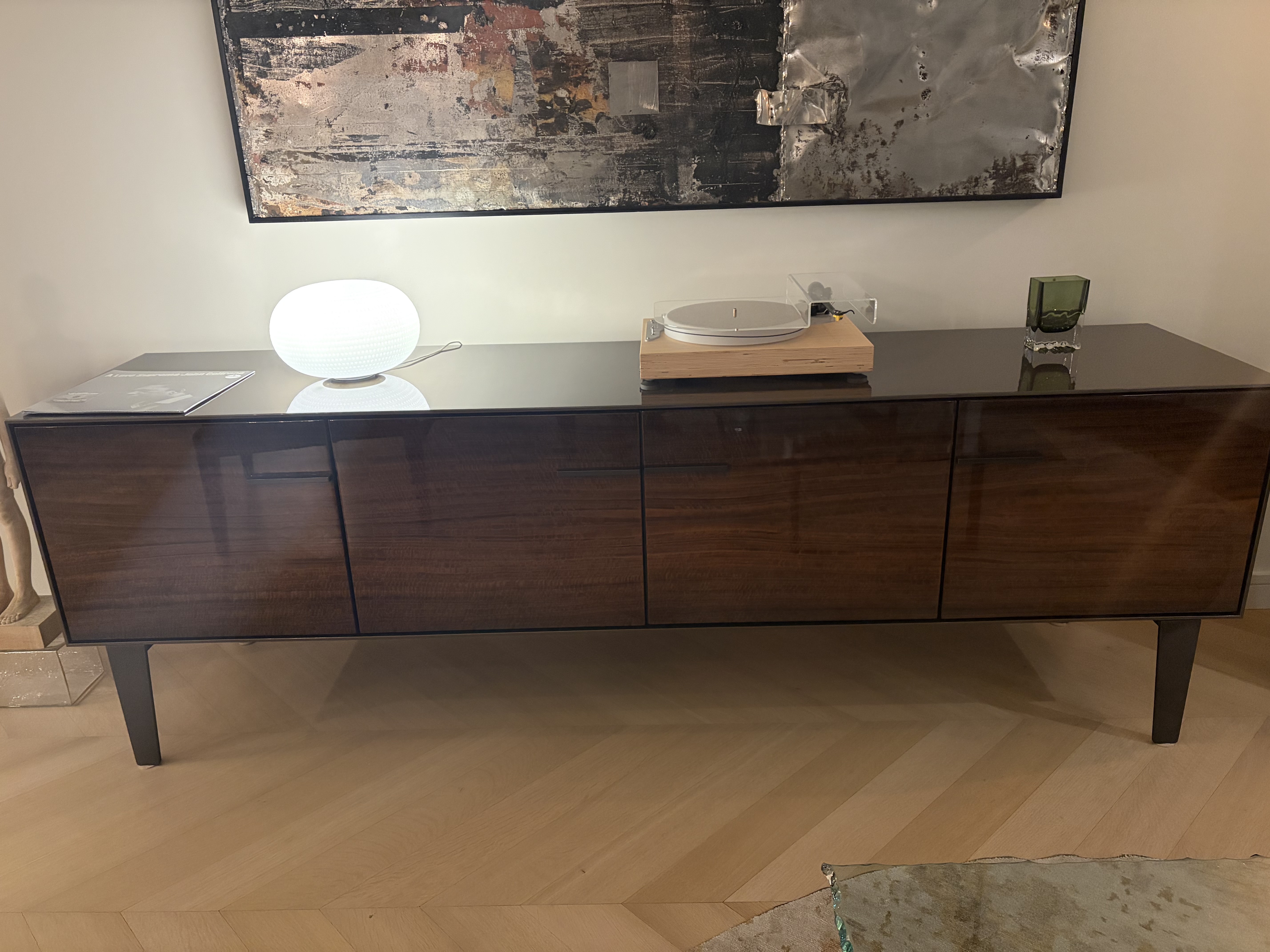 remove art from the wall and remove everything off the cabinet