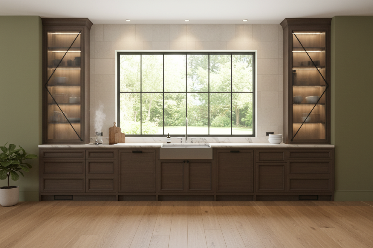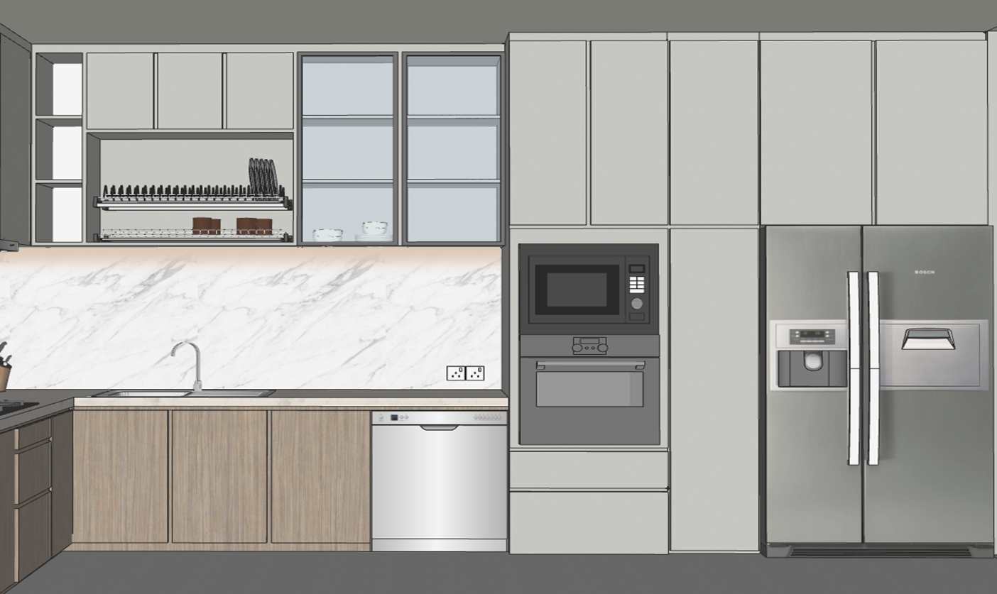 same material design and colour light laminate baige for all top cabinet no wood colour please
