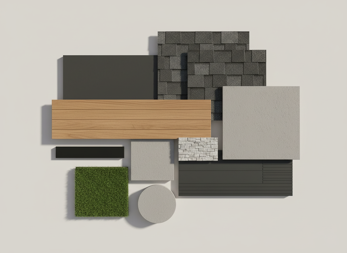 enhance the rendering to feel more photorealistic improve the lawn with lush natural green grass featuring realistic variation in tone subtle imperfections and soft edge transitions along the driveway and foundation add large mature trees in the backyard behind the home with full leafy canopies and natural depth ensure the trees are proportionate to the home and feel integrated into the landscape maintain existing home colors materials and lighting preserve the evening ambiance and realistic shadow direction