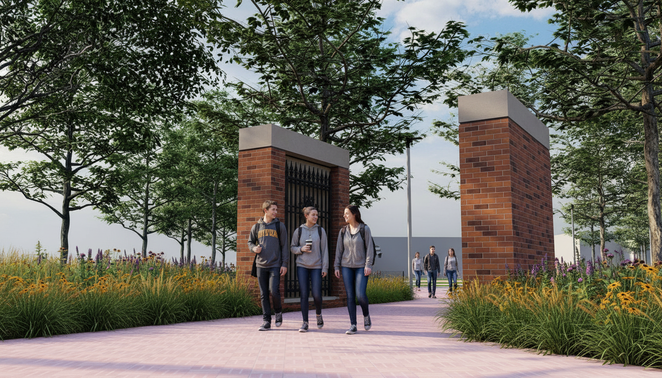 don t change background show students studying on seating on left show students playing frisbee in lawn