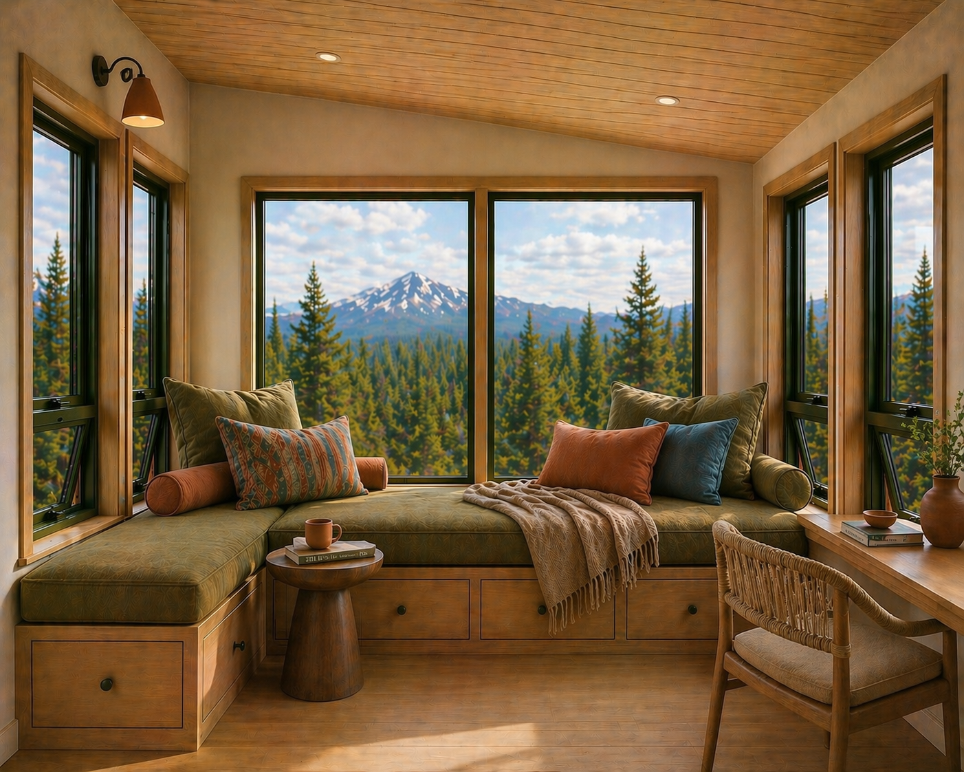 this is a render of a room that is 9 feet across window sill height is 22in make this more realistic
