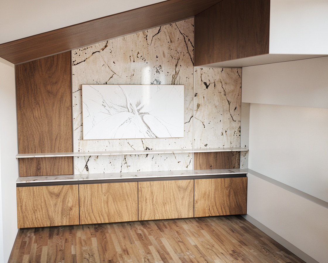 warm white girls bathroom with a light white oak vanities marble countertops on a sunny day