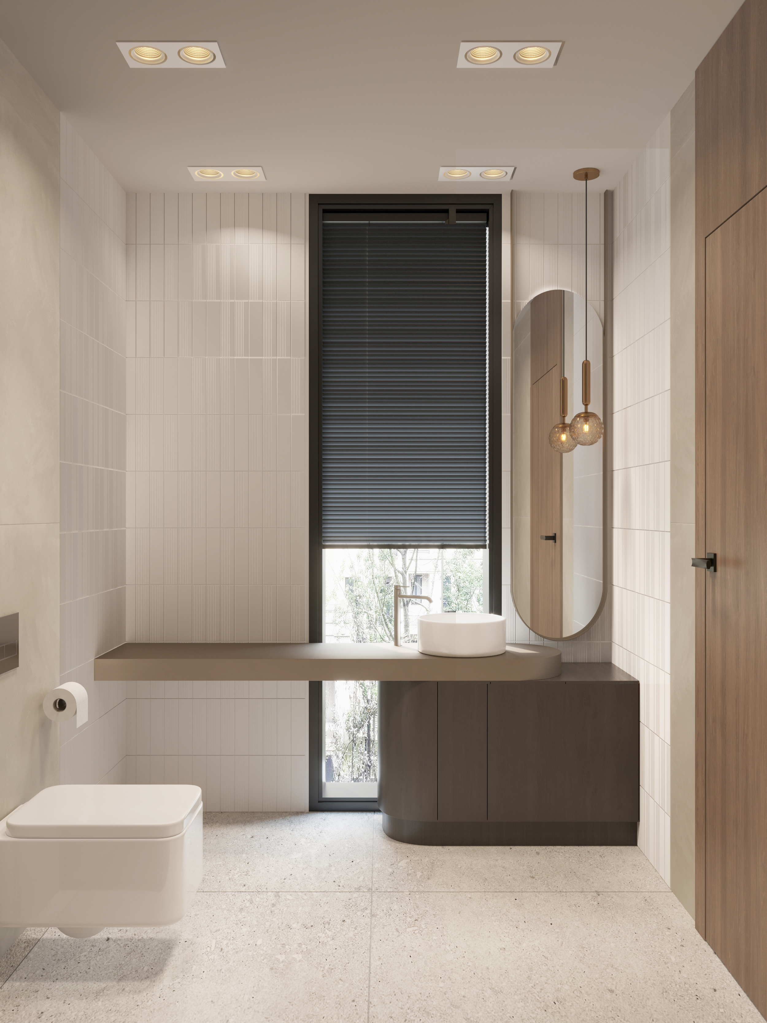 popraw jako i realizm wizualizacji azienki zachowaj w 100 istniej cy uk ad proporcje i aran acj wn trza nie zmieniaj geometrii rozmieszczenia ani element w wyposa enia delikatnie rozja nij ekspozycj i balans bieli zachowuj c naturalne o wietlenie zwi ksz ostro szczeg owo materia w i realizm tekstur popraw widok za oknem bardziej realistyczny estetyczny bez zmiany jego kadru nie zmieniaj kolor w ceramiki armatury ani pozosta ych materia w
