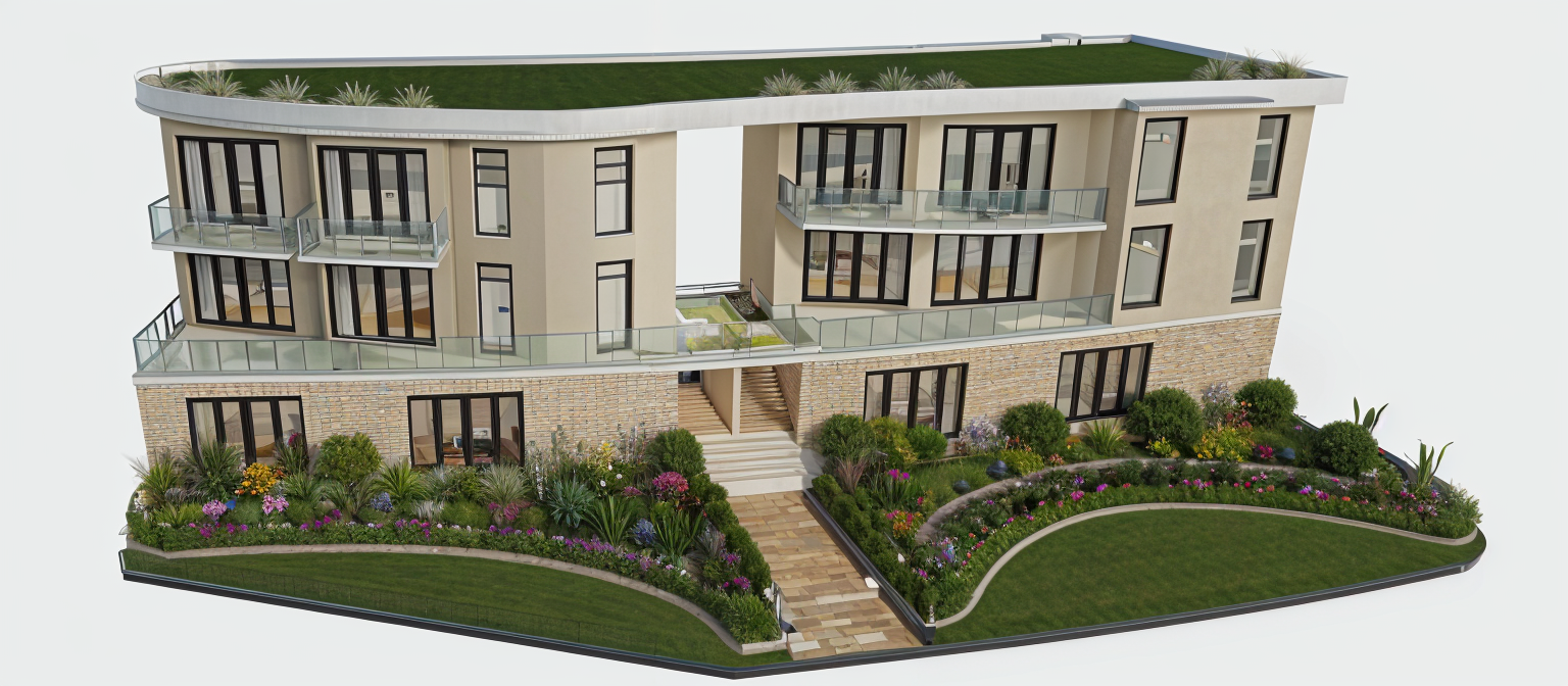 a manicured lawn layered flower beds low maintenance shrubs native plants stone pathway leading to the entrance make two pools