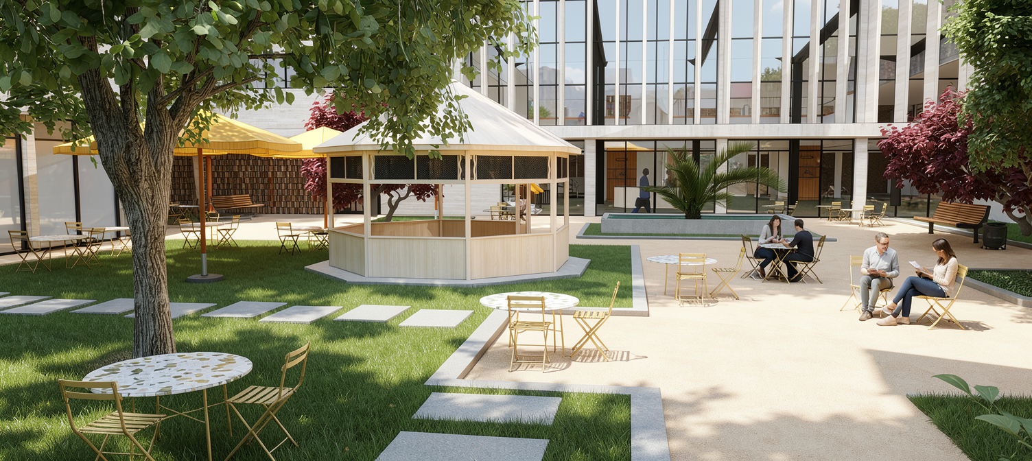 add some poeple in the scene mid day sunny day in barcelona dont change the ground maintain the colors