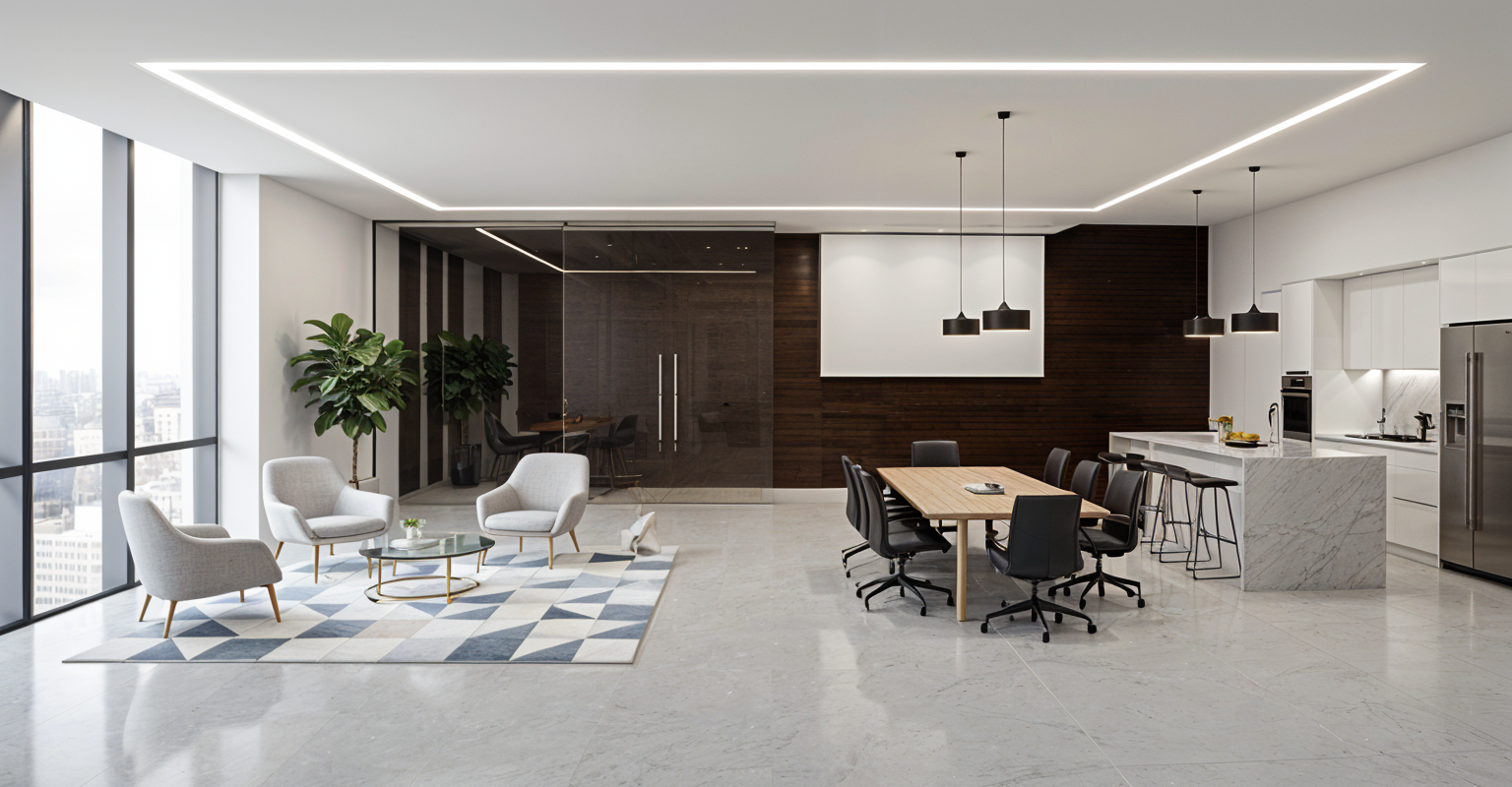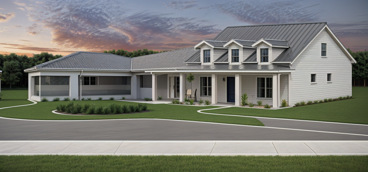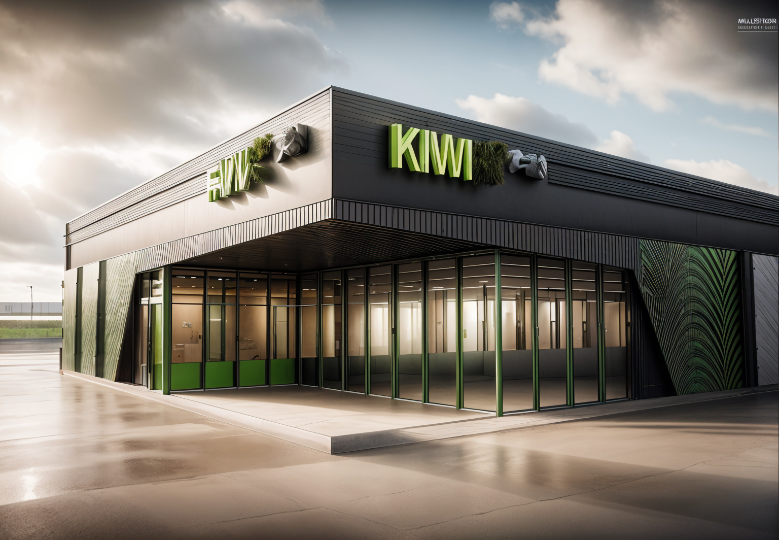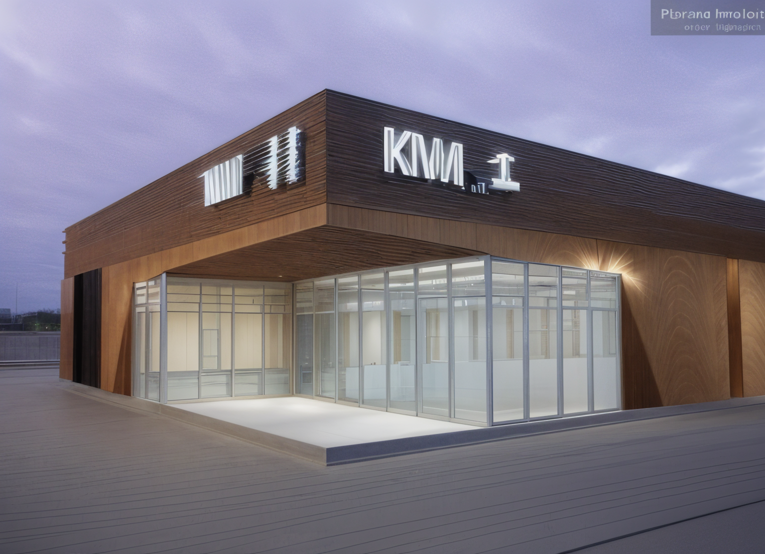 exterior shot visualization in the evening with people entering the store in front of it inside grocery stands are visible through the glass facade make wooden parts of facade ligten up