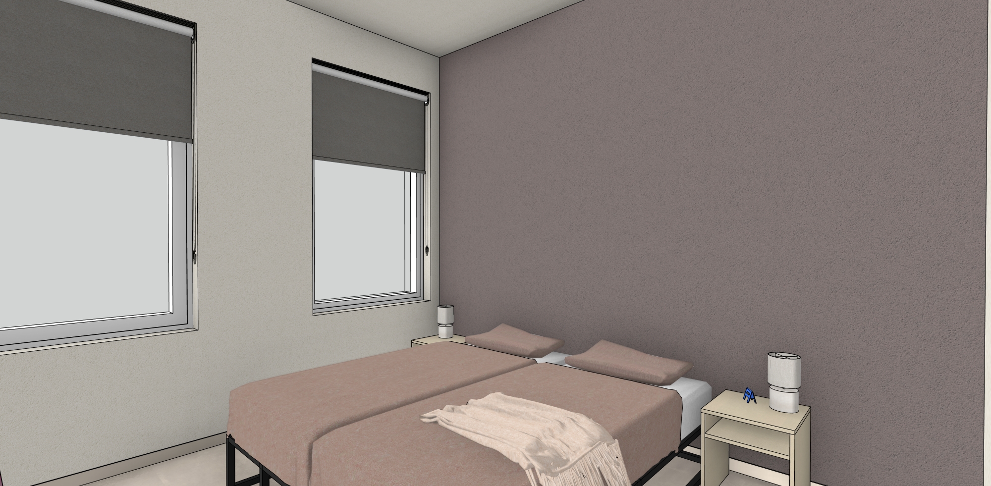 maintain all colors natural daylight outside arnhem room is on the second floor make everything as realistic as possible the nightstand is the color textile beige from egger